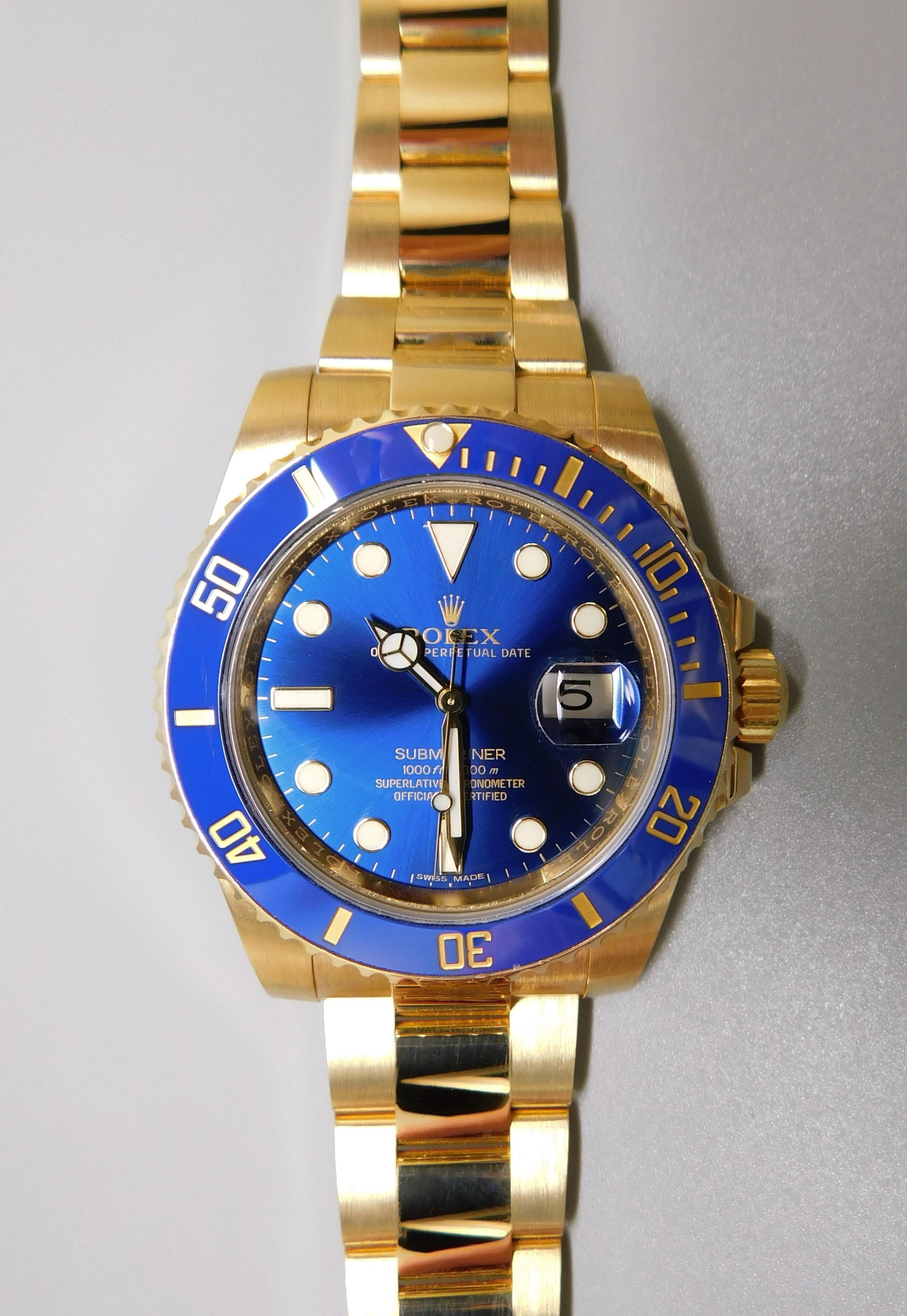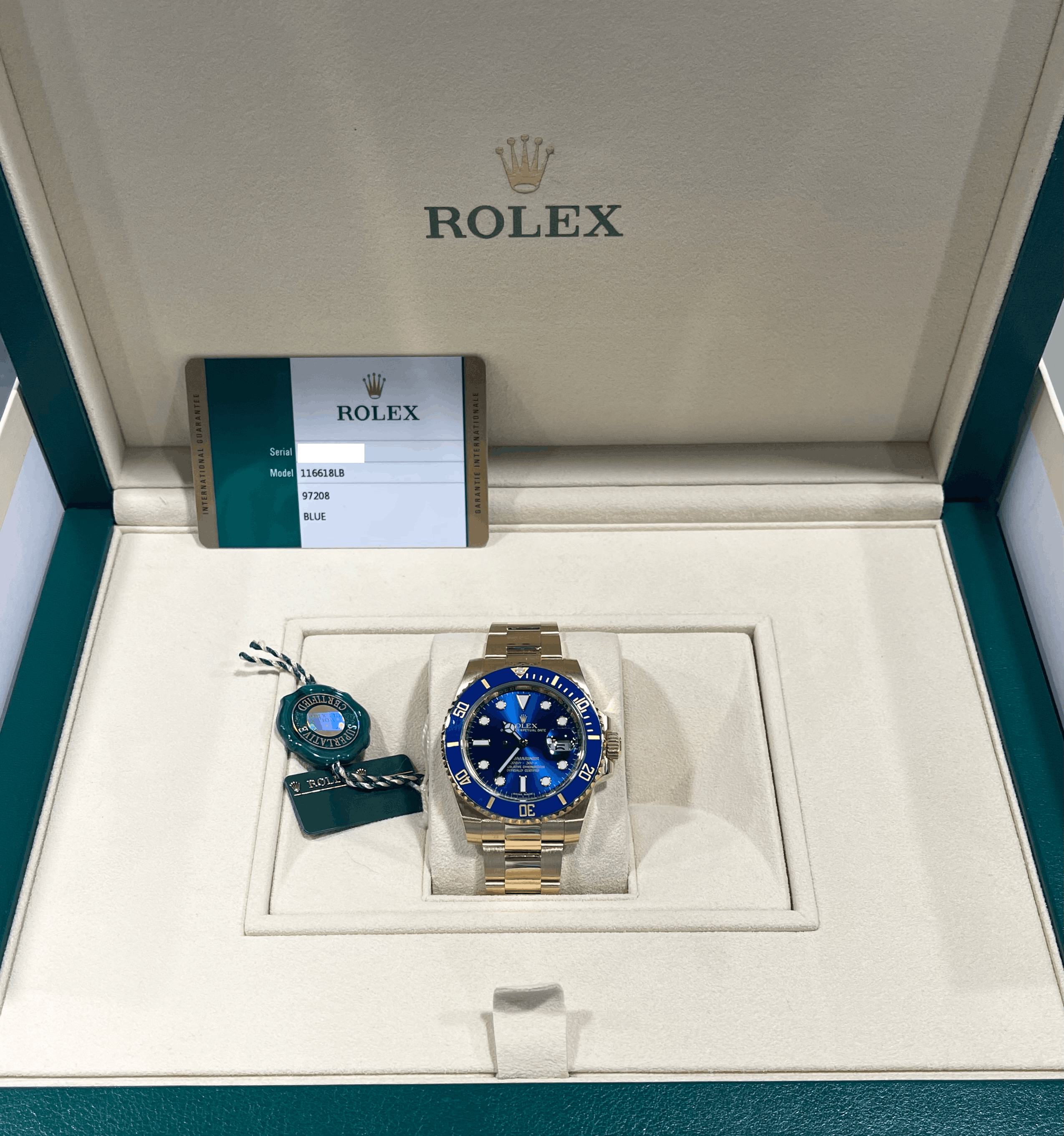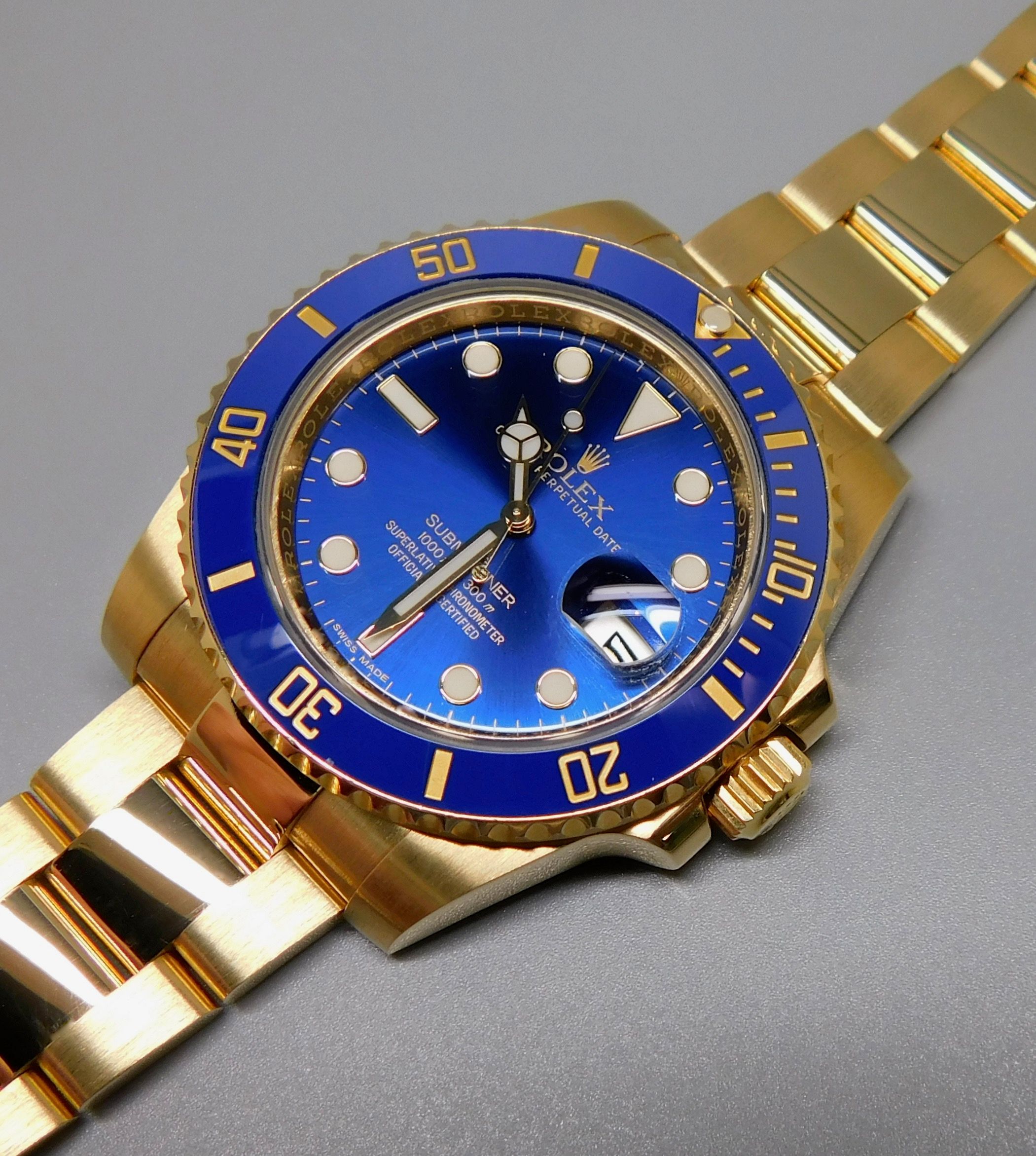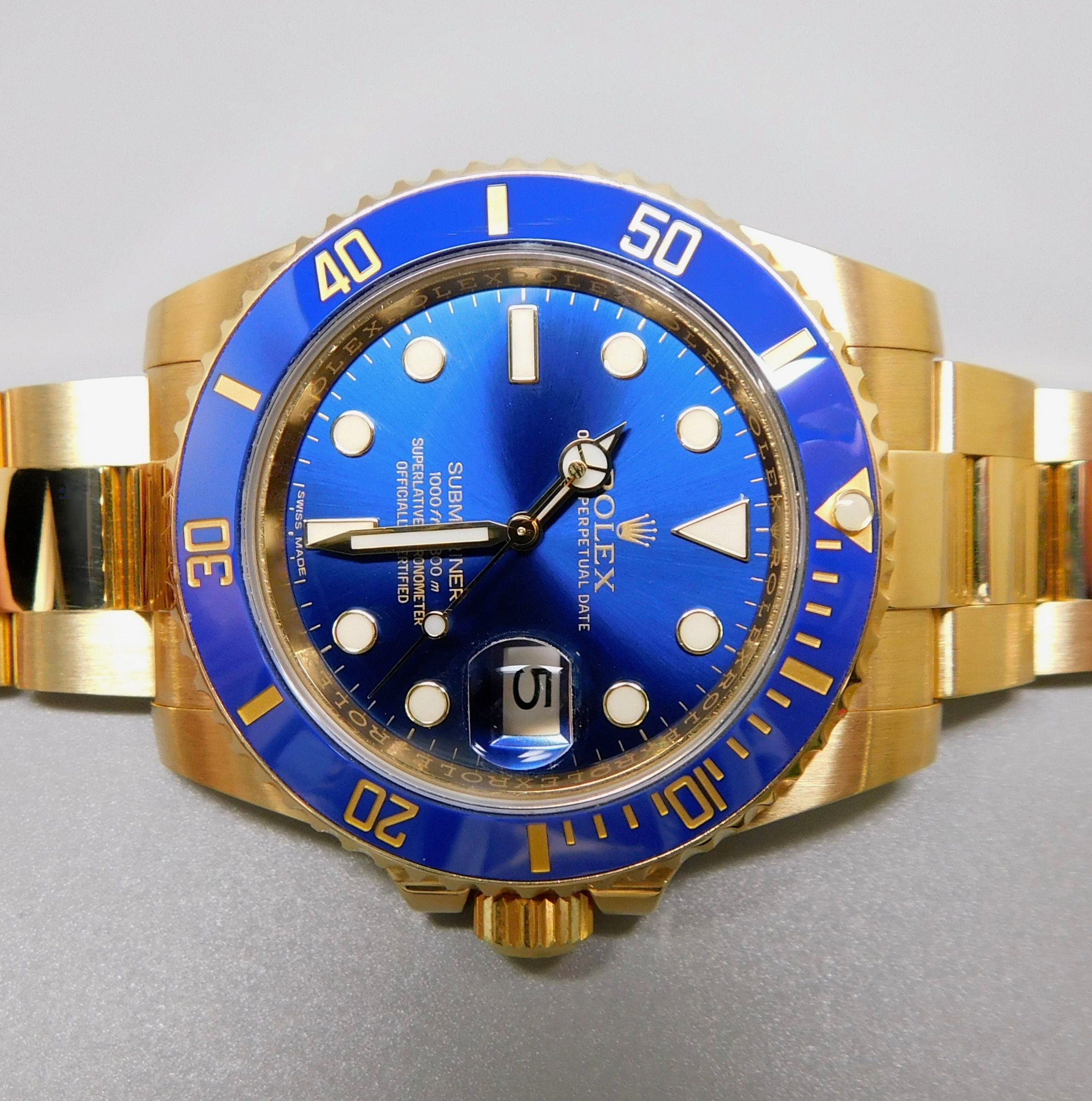 Rolex Submariner Date 116618LB, mostrador azul, caixa/documentação