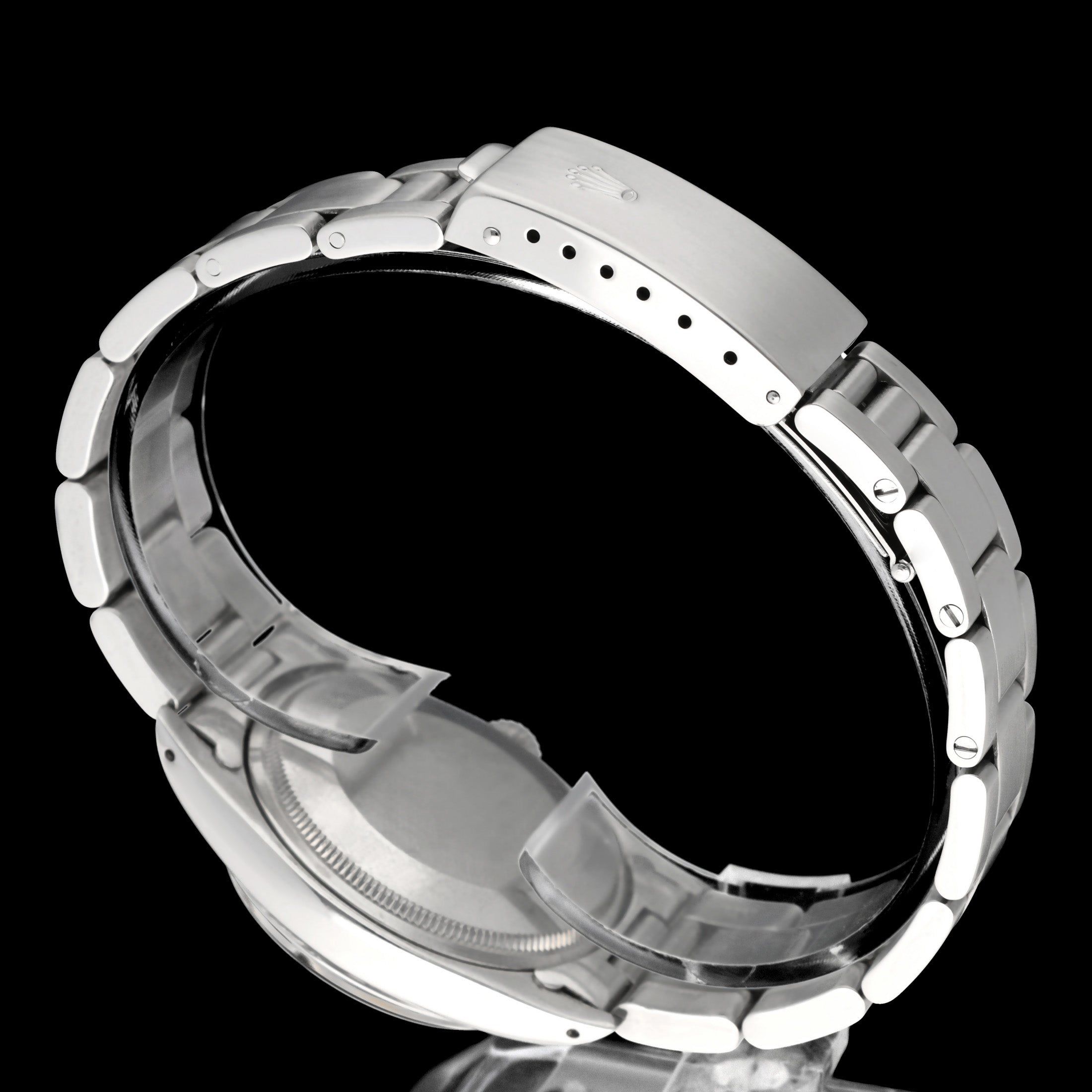 - Sinais leves de uso como micro-riscos ou pequenos riscos superficiais. A caixa, a luneta e a bracelete mantêm arestas definidas e a forma original. Pode ter sido polido profissionalmente sem afetar os contornos originais. Totalmente funcional mecanicamente.