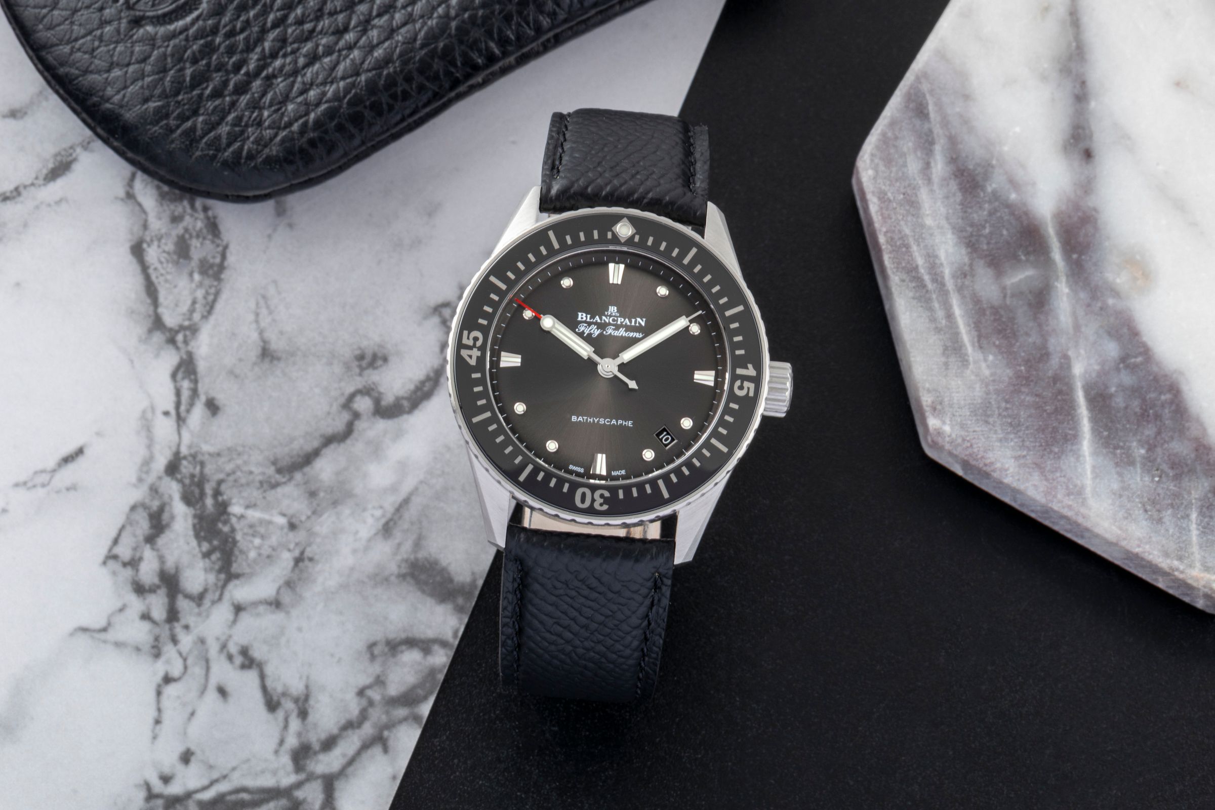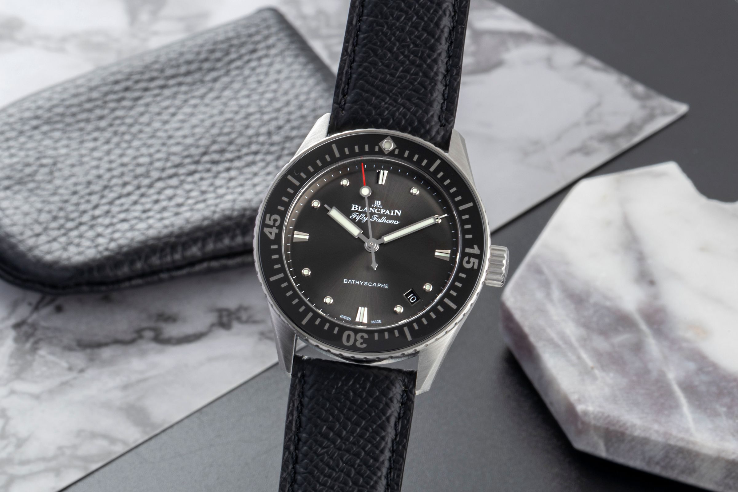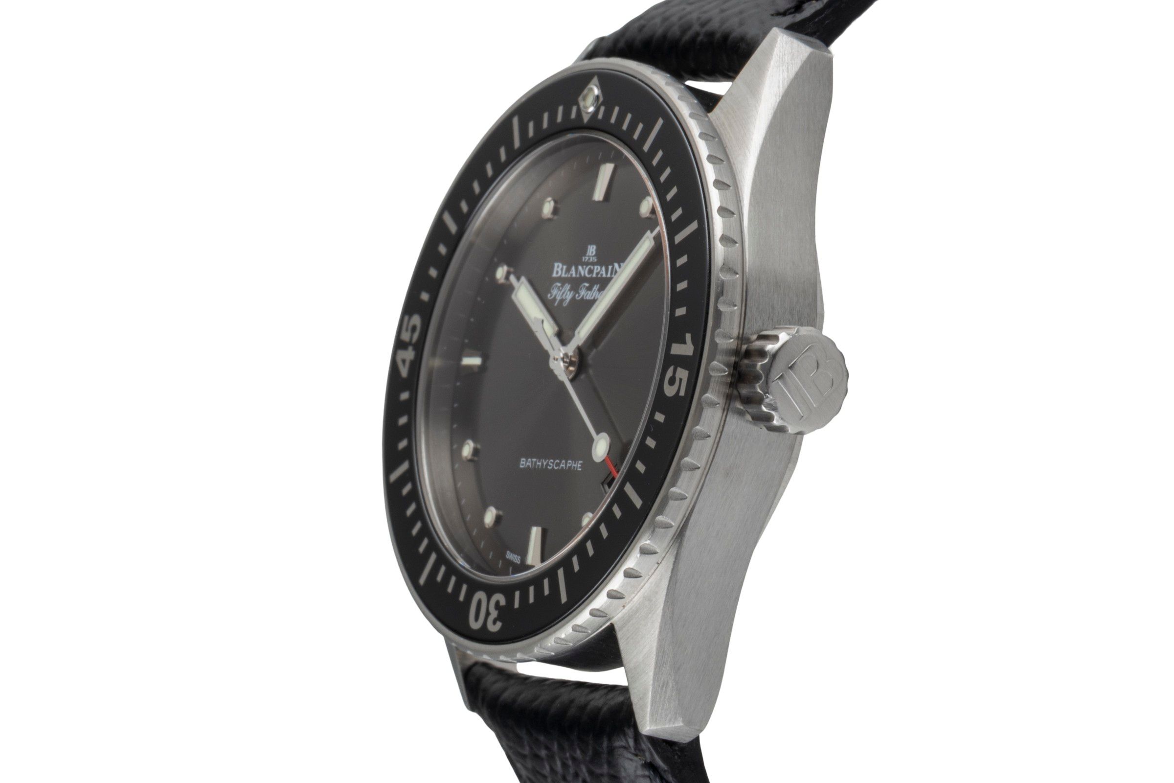 Alternative title: Blancpain 5100B-1110-B52A Fifty Fathoms Bathyscaphe; Blancpain Fifty Fathoms Bathyscaphe Automatik R. 5100B-1110-B52A NP: 11000,-€ [2507354]