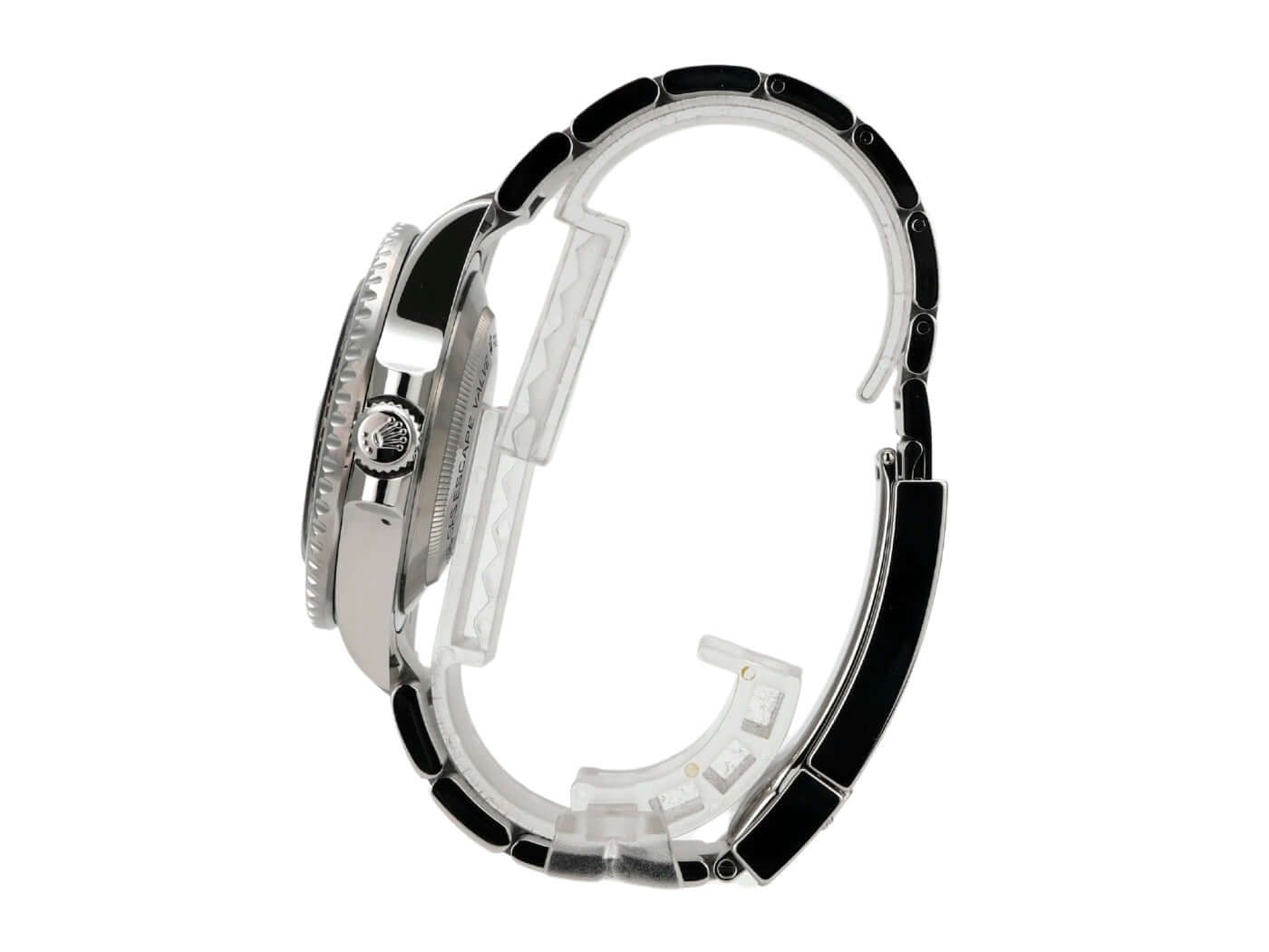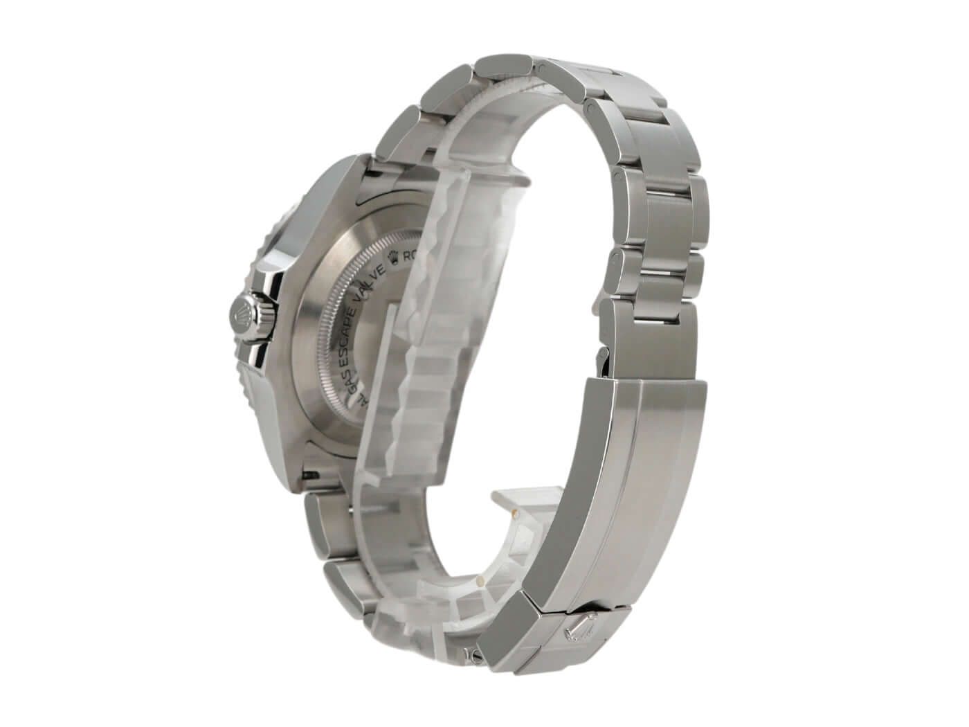 Caixa feita de aço inoxidável polido e acetinado, diâmetro da caixa de 43 mm, bezel de aço inoxidável com inserto de cerâmica preta, escala de 60 minutos e ponto luminoso, rotativo unidirecional, bracelete Oyster de aço inoxidável acetinado com fecho de segurança dobrável, mostrador preto com índices luminosos aplicados, ponteiros luminosos, movimento automático, calibre 3235 da manufatura Rolex, 31 rubis, frequência de 28.800 A/h, display de data às 3 horas, cronômetro, cristal de safira, válvula de hélio na posição de 9 horas, coroa rosqueada com protetores de coroa, fundo da caixa de aço inoxidável rosqueado e gravado, resistente à água até 122 bar.