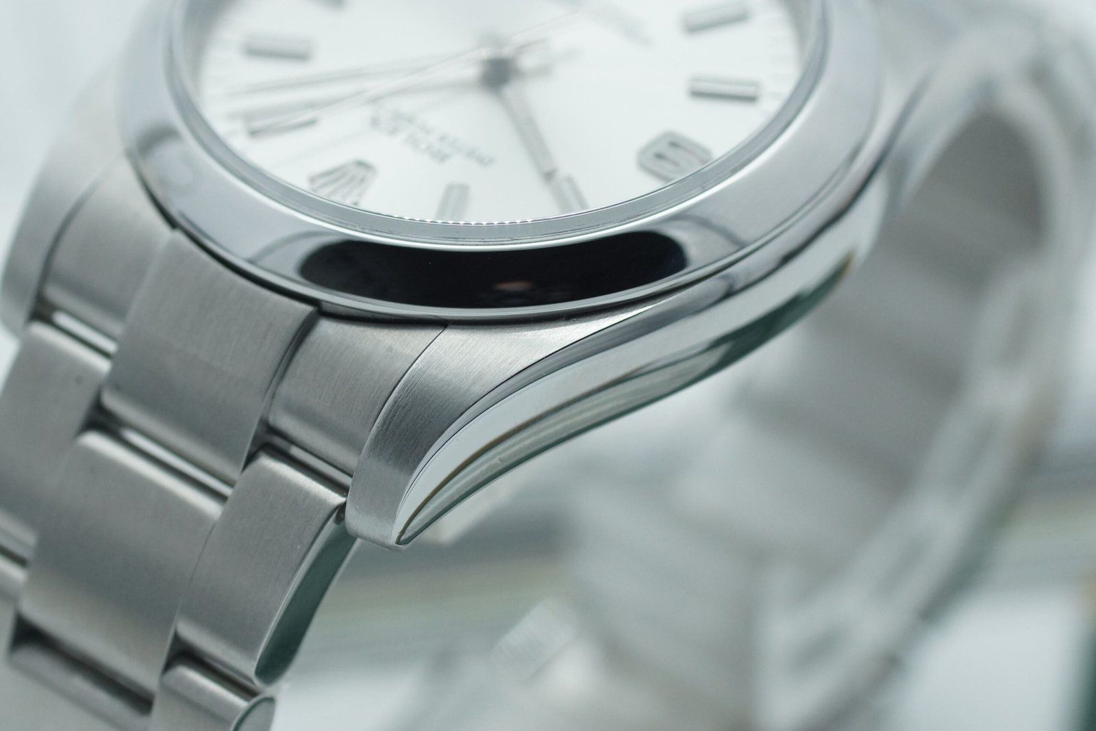 - Sinais leves de uso como micro-riscos ou pequenos riscos superficiais. A caixa, a luneta e a bracelete mantêm arestas definidas e a forma original. Pode ter sido polido profissionalmente sem afetar os contornos originais. Totalmente funcional mecanicamente.