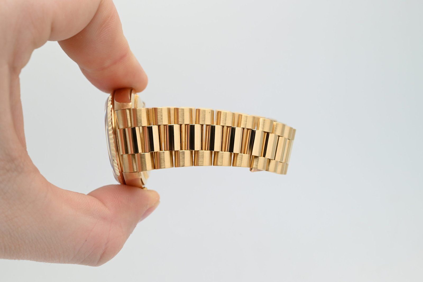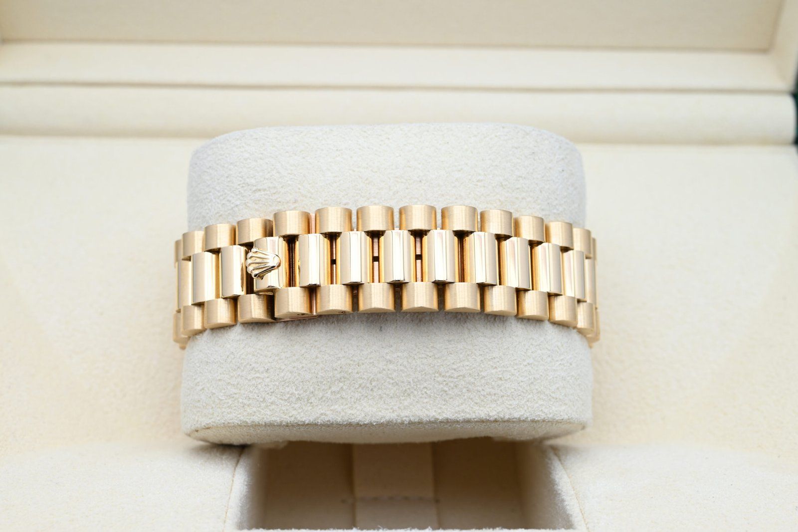 Rolex Day-Date 18238 from 1991 with the gold dial in excellent condition, including the original box and papers. All of our watches have been thoroughly checked by our own watchmaker and serviced when needed.