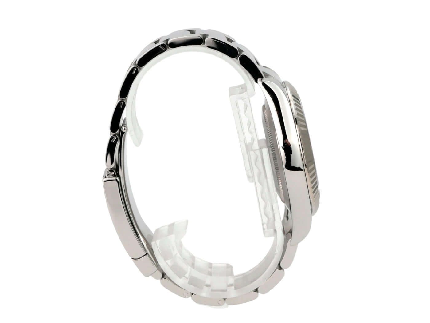 Rolex Datejust II Stainless Steel / White Gold Ref. 116334 from 2017Case made of polished and satin-finished stainless steel, case diameter 41 mm, case height 12 mm, fluted white gold bezel, polished and satin-finished Oyster stainless steel bracelet with folding clasp, black dial with applied Roman numerals, luminous hands, automatic movement, Rolex manufacture caliber 3136 with 31 jewels, date display with magnifying glass at 3 o'clock, chronometer, scratch-resistant sapphire crystal, screw-down crown, screwed stainless steel case back, water-resistant up to 10 bar.