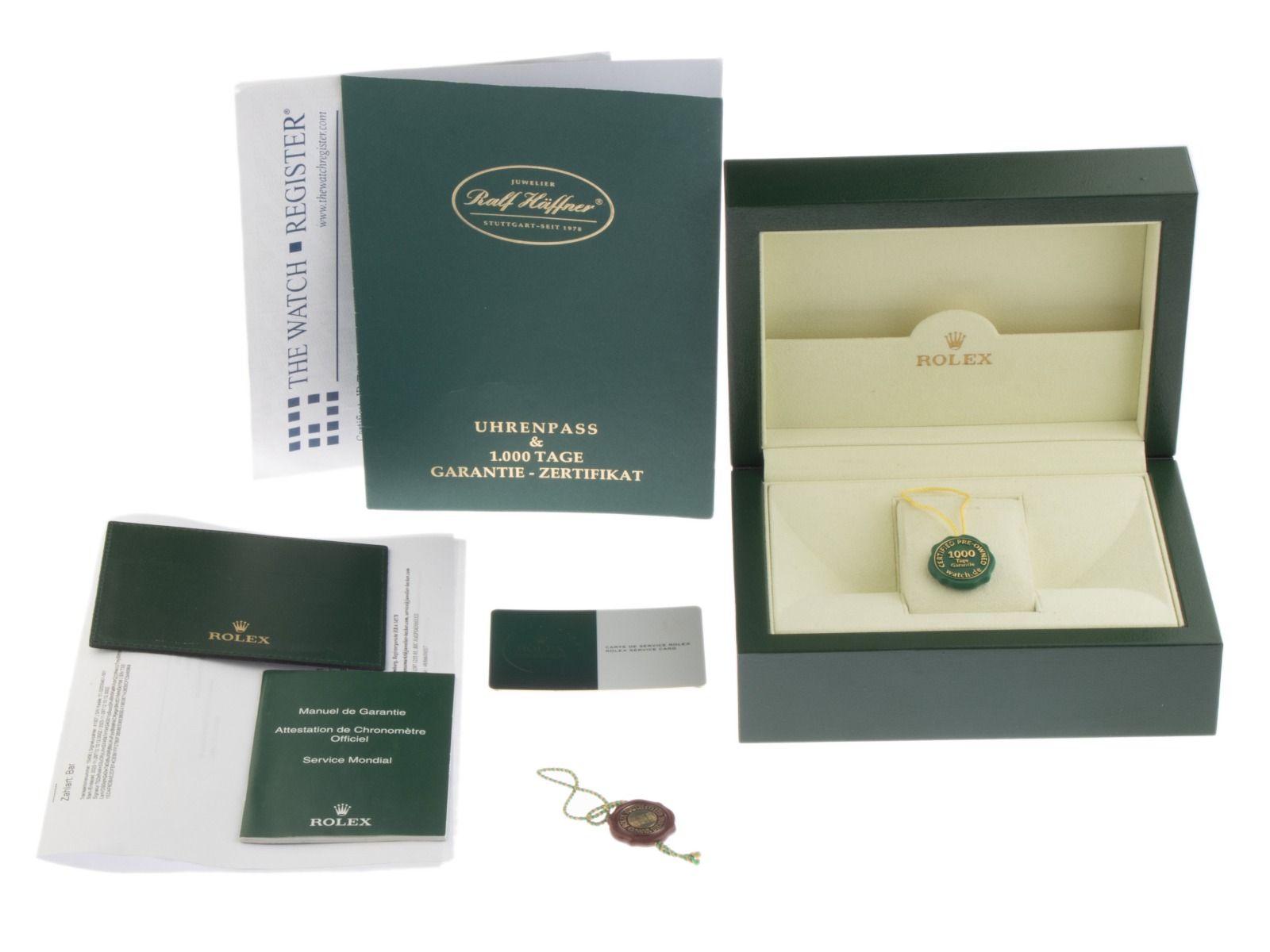 Inclui selo de certified pre owned / passaporte do relógio com uma imagem colorida, descrição detalhada e o valor de reposição do relógio acima de 12500,-€ e 1000 dias de garantia a partir da data de compra.