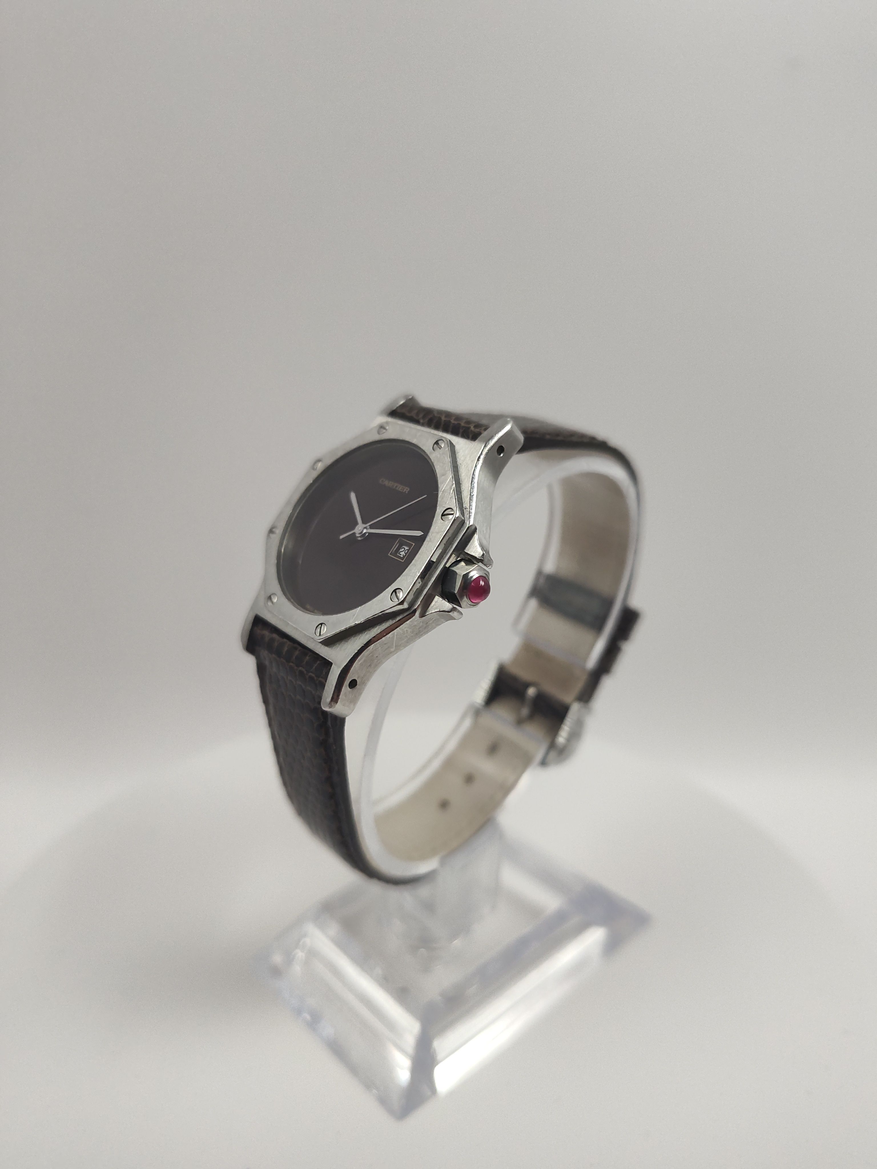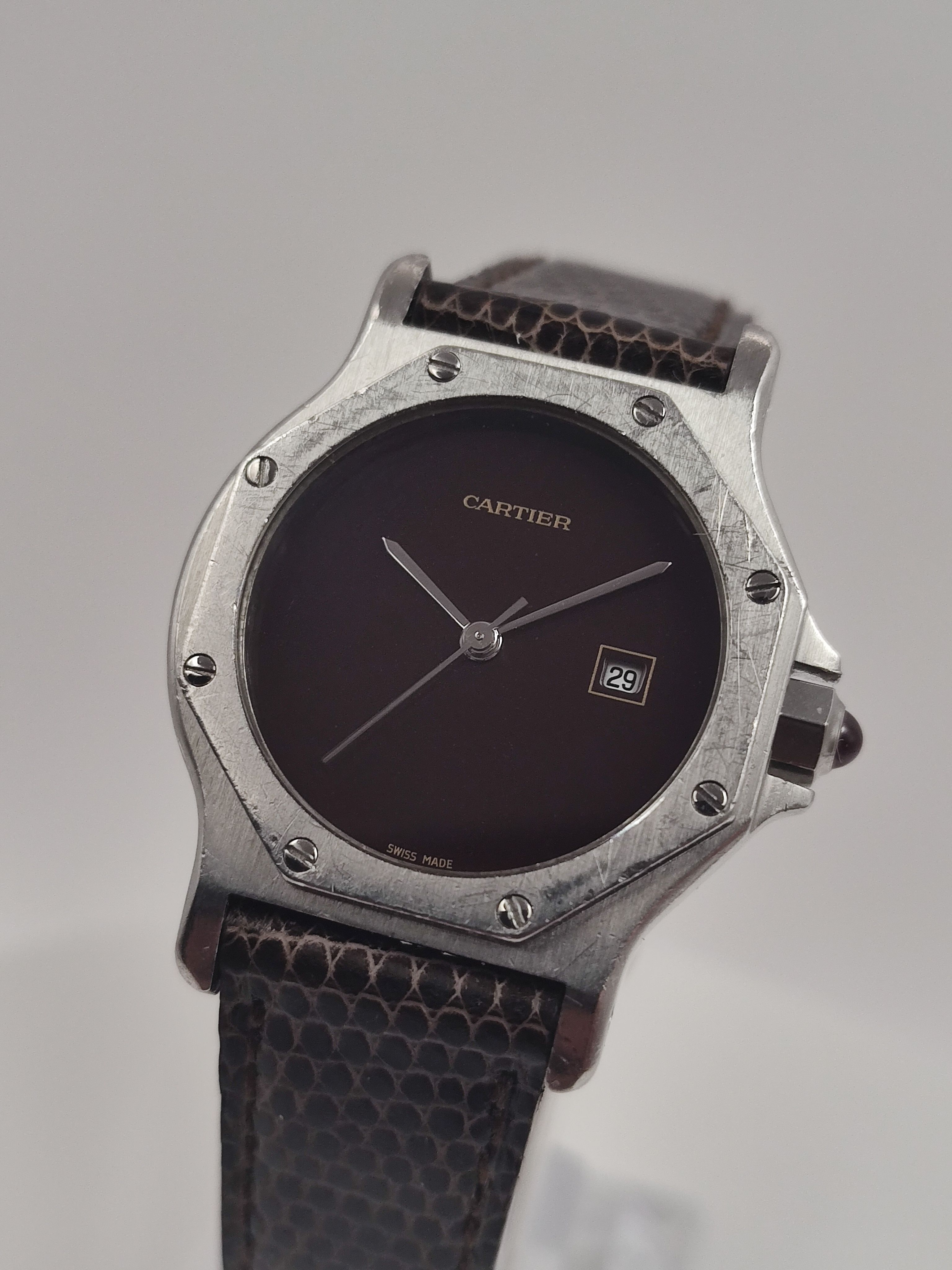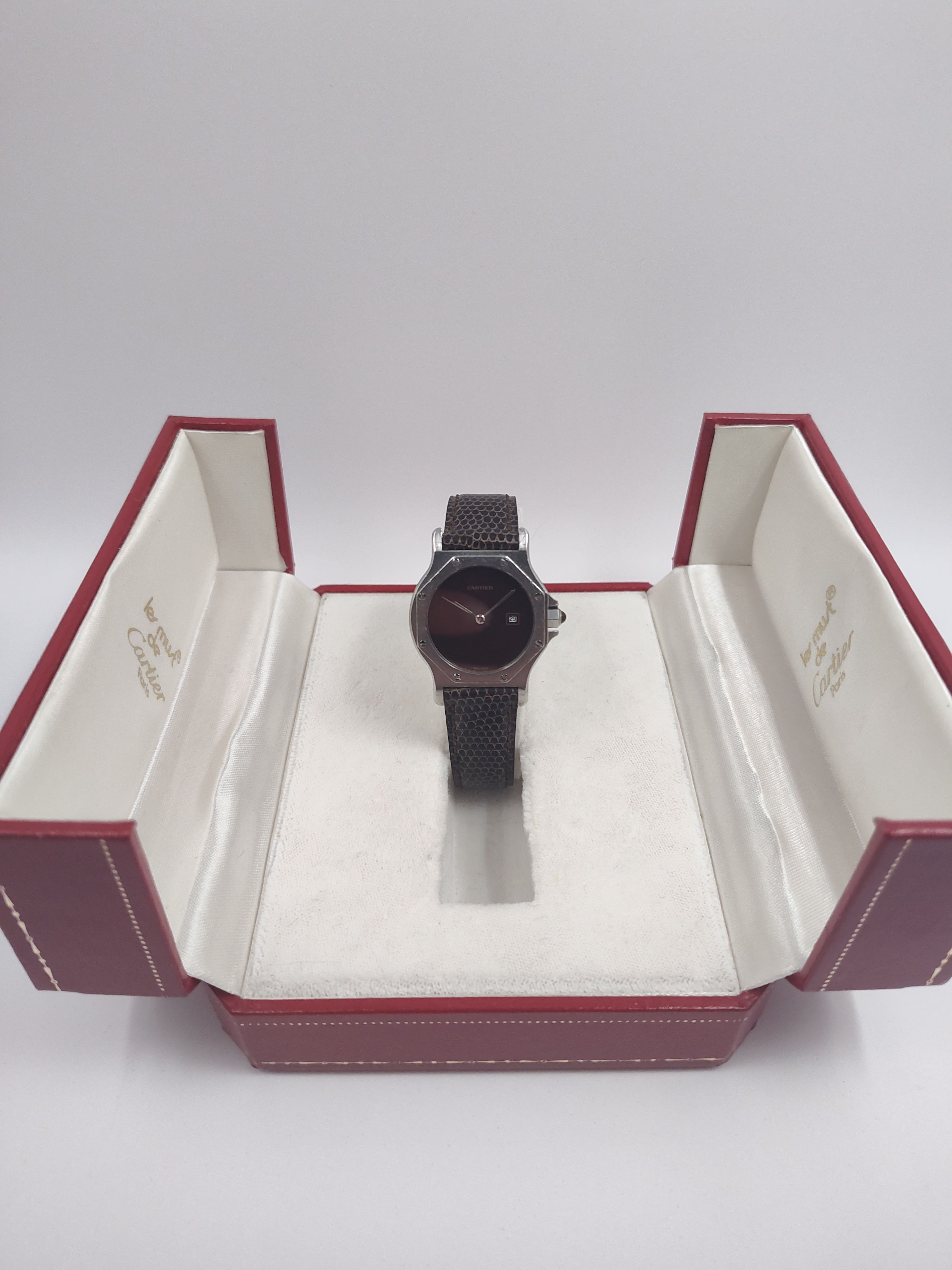 Cartier Santos Octagon 2965 Automatic Original Box Serviced Burgundy Dial RARE. Pictures are part of the description, if you want to see more, do not hesitate to ask. Worldwide shipping with Colissimo / DHL Express.