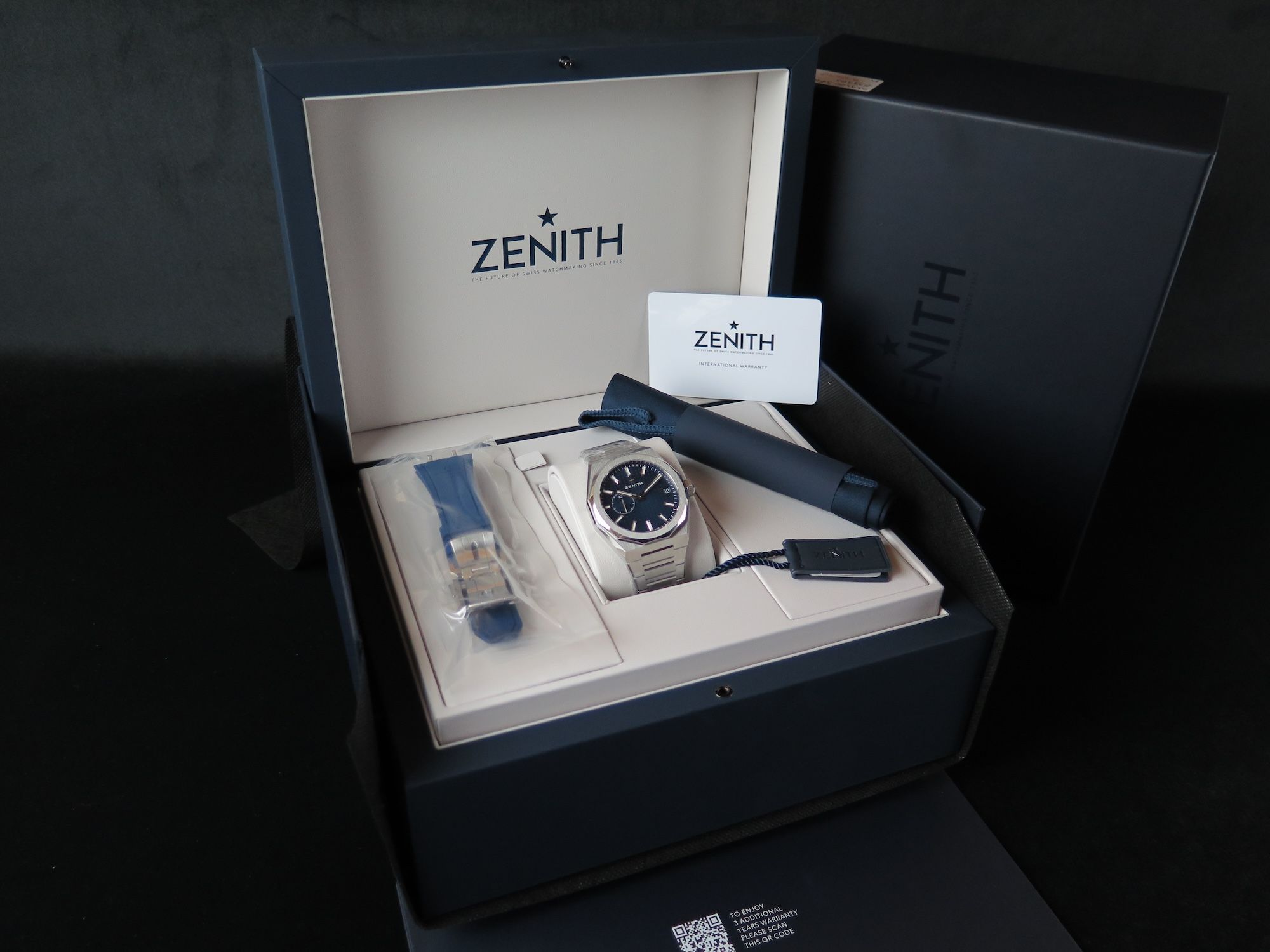 Dial colour is blue.Originally sold by Zenith Italy 04/2024.