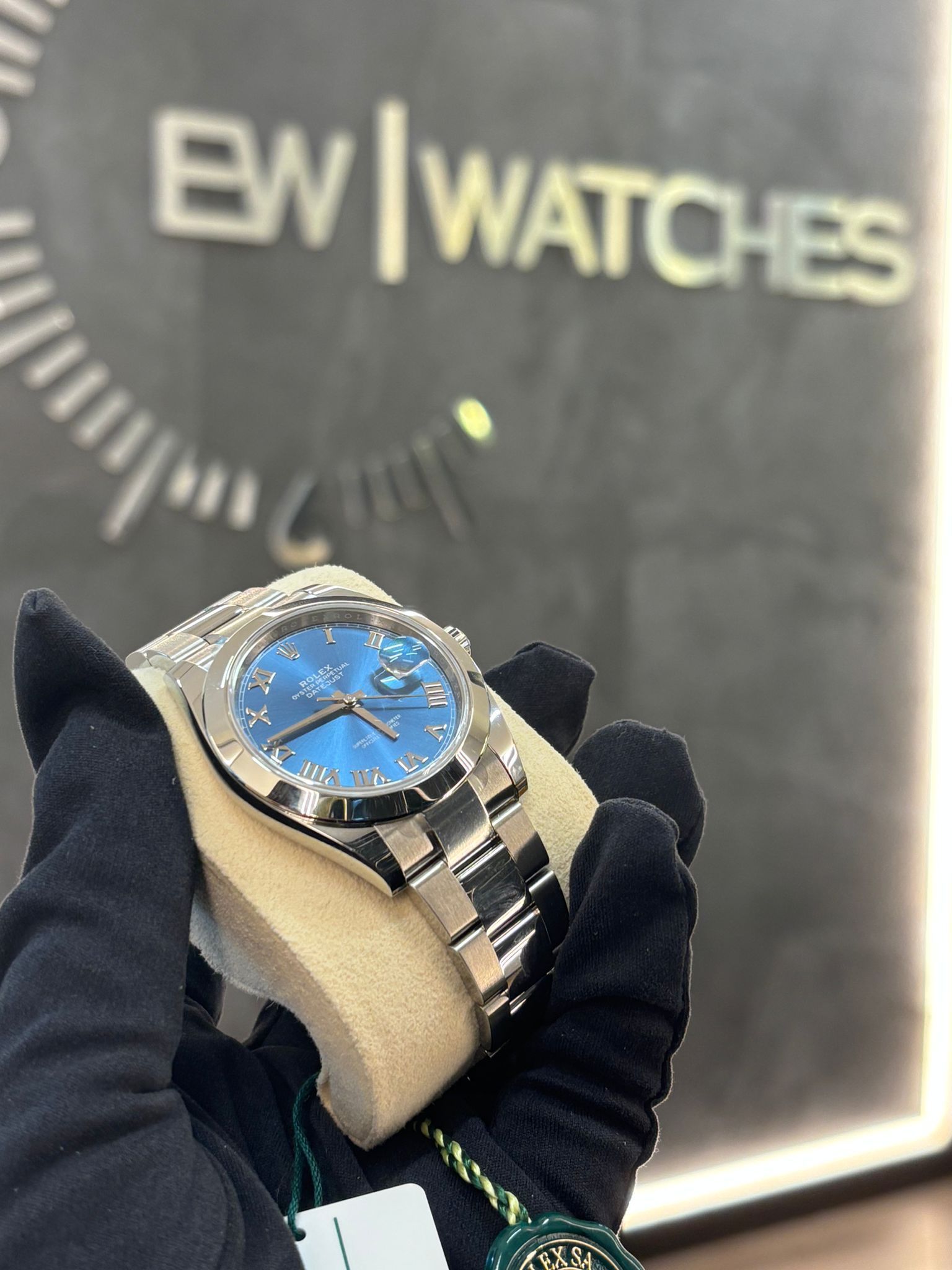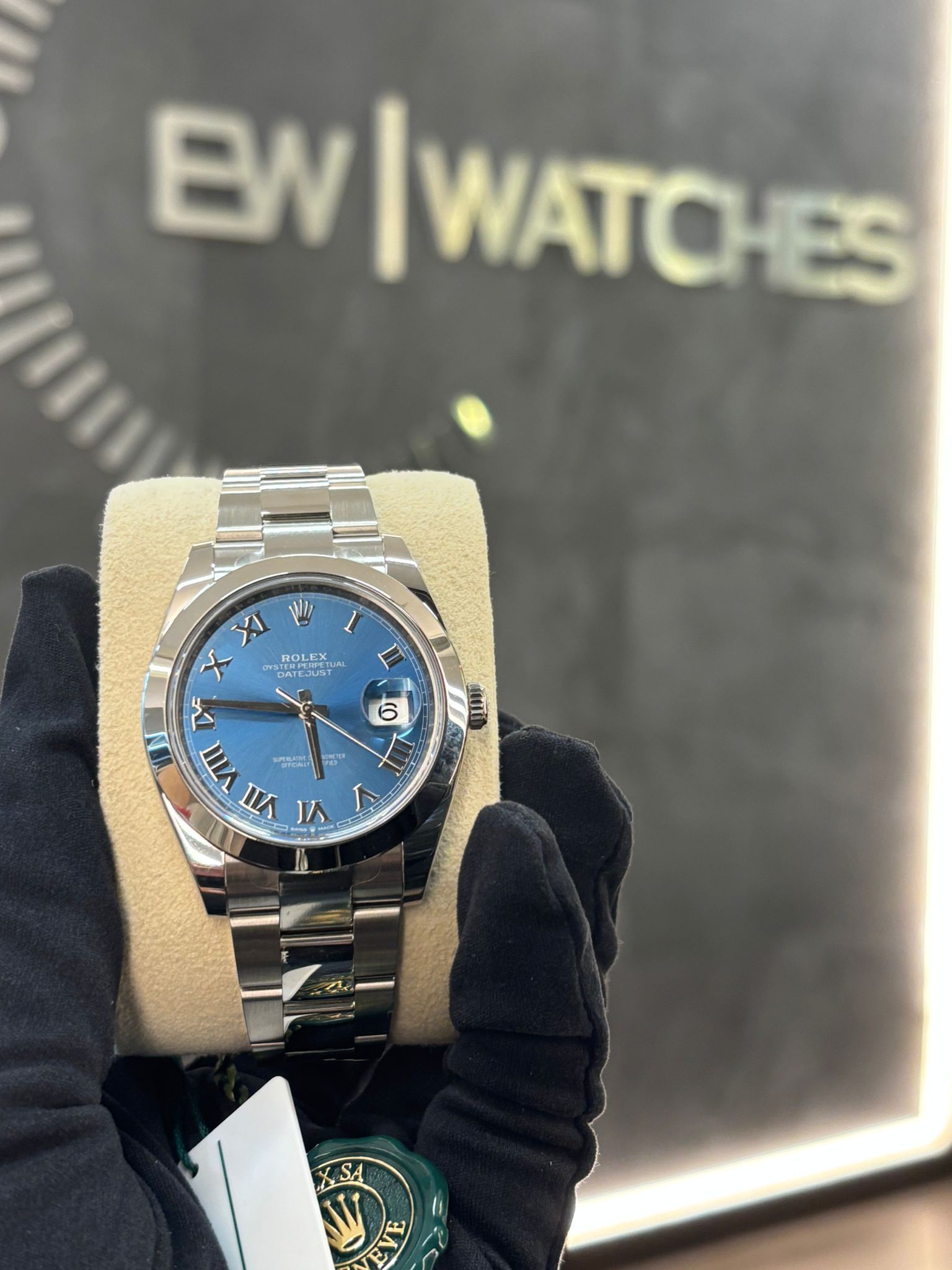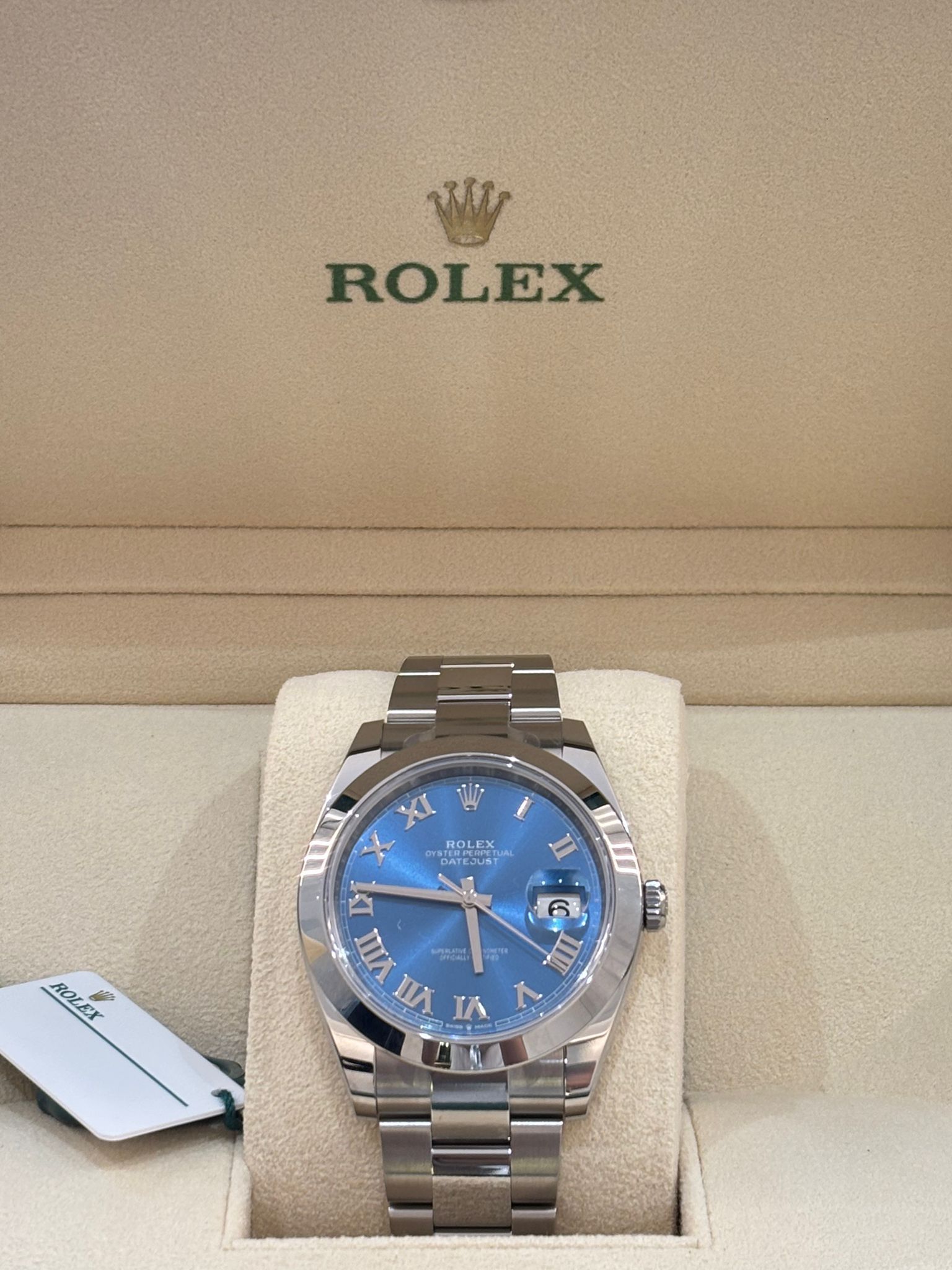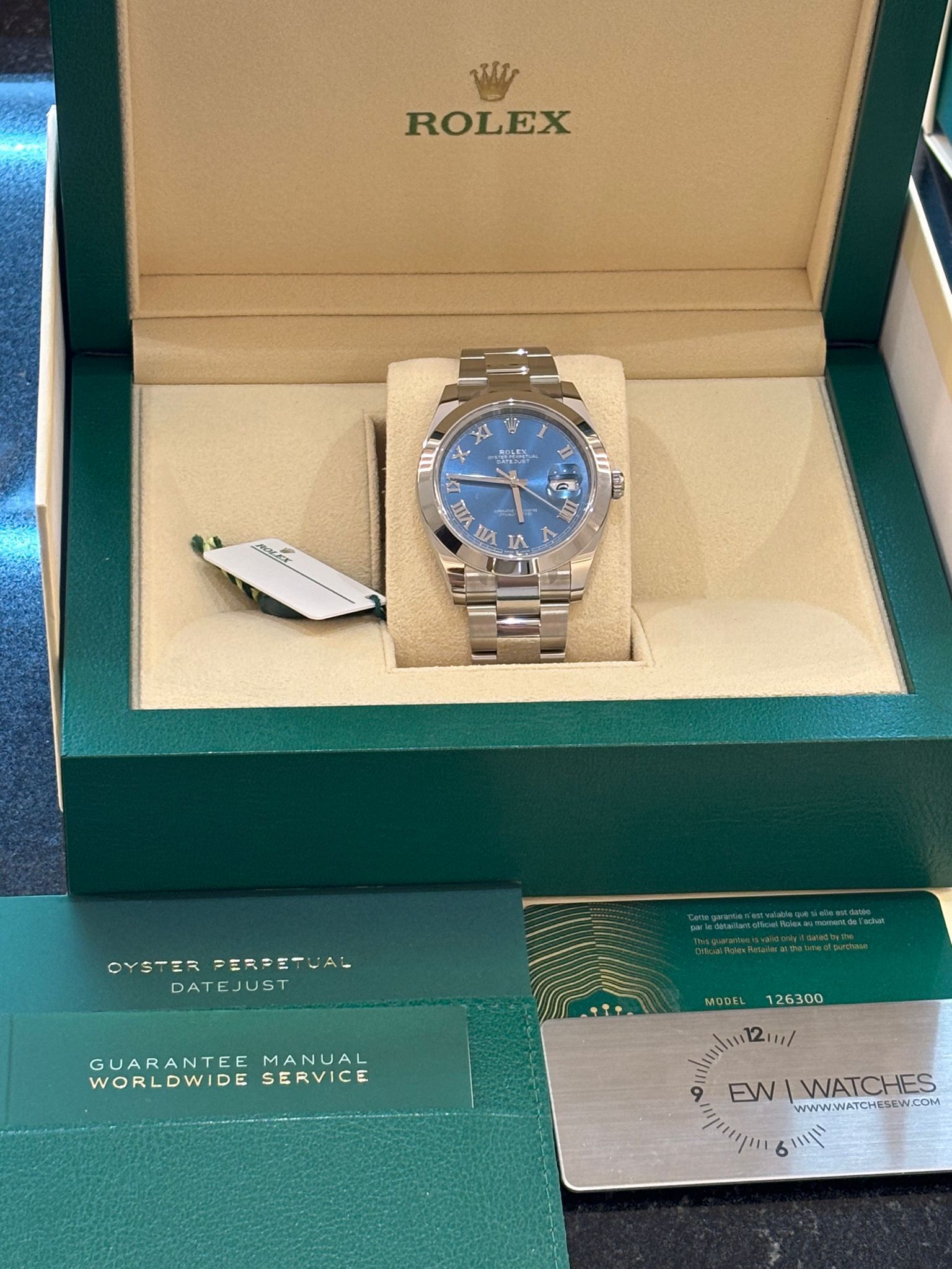 Rolex Datejust 41 M126300-0017 - Azzurro blue dial, smooth bezel, oyster bracelet