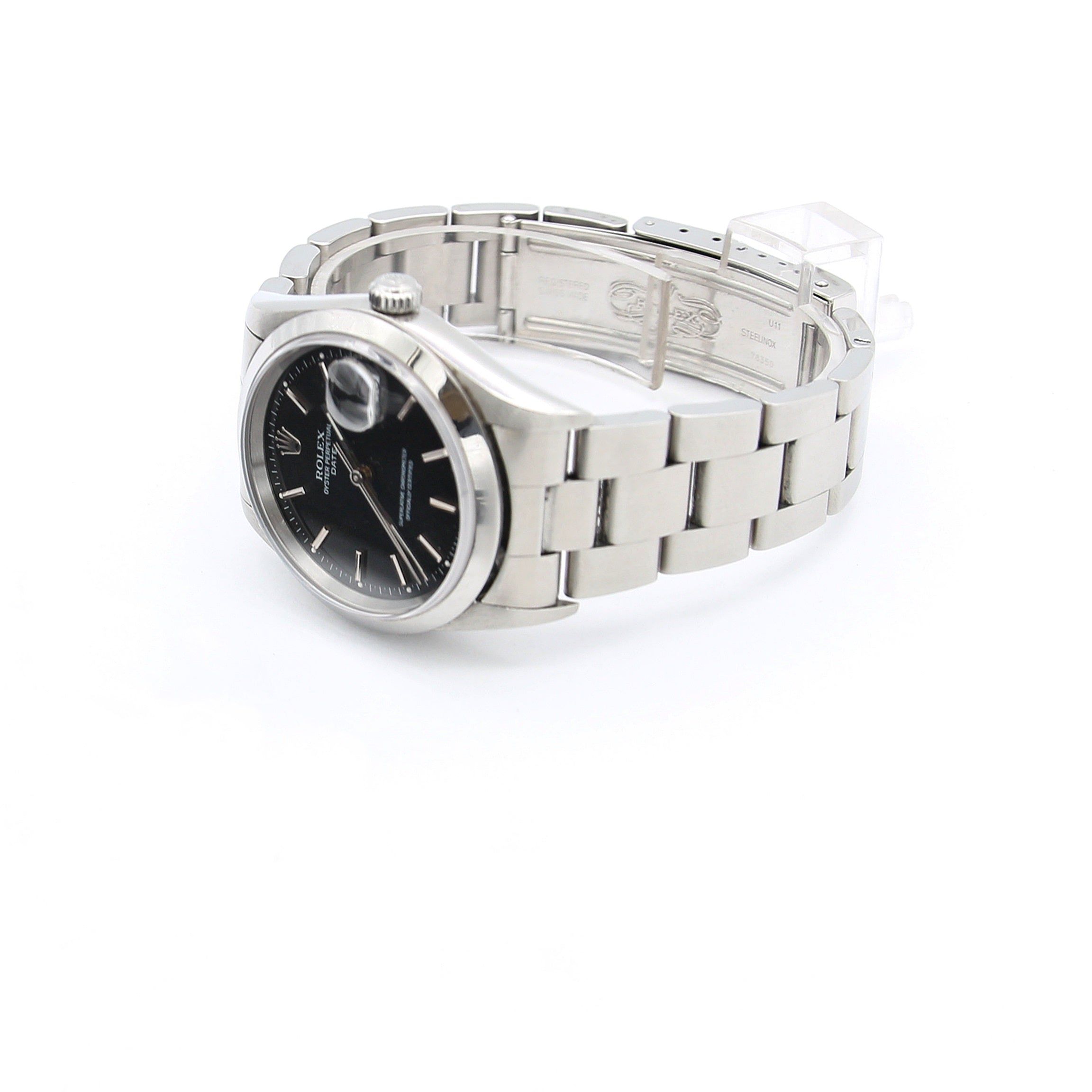 For sale at Debonar Watches: pre-owned Rolex Oyster Perpatual Date ref. 15200.This Rolex hasa deep black dial, ready to be noticed, but adaptable to every situation.On top is a smooth polished bezel, giving an attractively minimalist frame to the dial. Officially known as the Rolex Oyster Perpetual Date (‘Oyster’ the name of the brand’s waterproof housing and ‘Perpetual’ the title given to their self-winding movement), the 15200, arrived in 1988 using the same styling of the watch nailed down decades ago, is a purely stainless steel watch. BRAND ROLEX MODEL DATE REFERENCE 15200 CASE MATERIAL STEEL MOVEMENT AUTOMATIC DIMENSION 34 MM DIAL BLACK BEZEL STEEL (DOMED) CRYSTAL SAPPHIRE BRACELET TYPE OYSTER BRACELET MATERIAL STEEL BRACELET LENGHT 17 CM ORIGINAL BOX NO ORIGINAL PAPERS NO YEAR APPROX. '90s CONDITION VERY GOOD