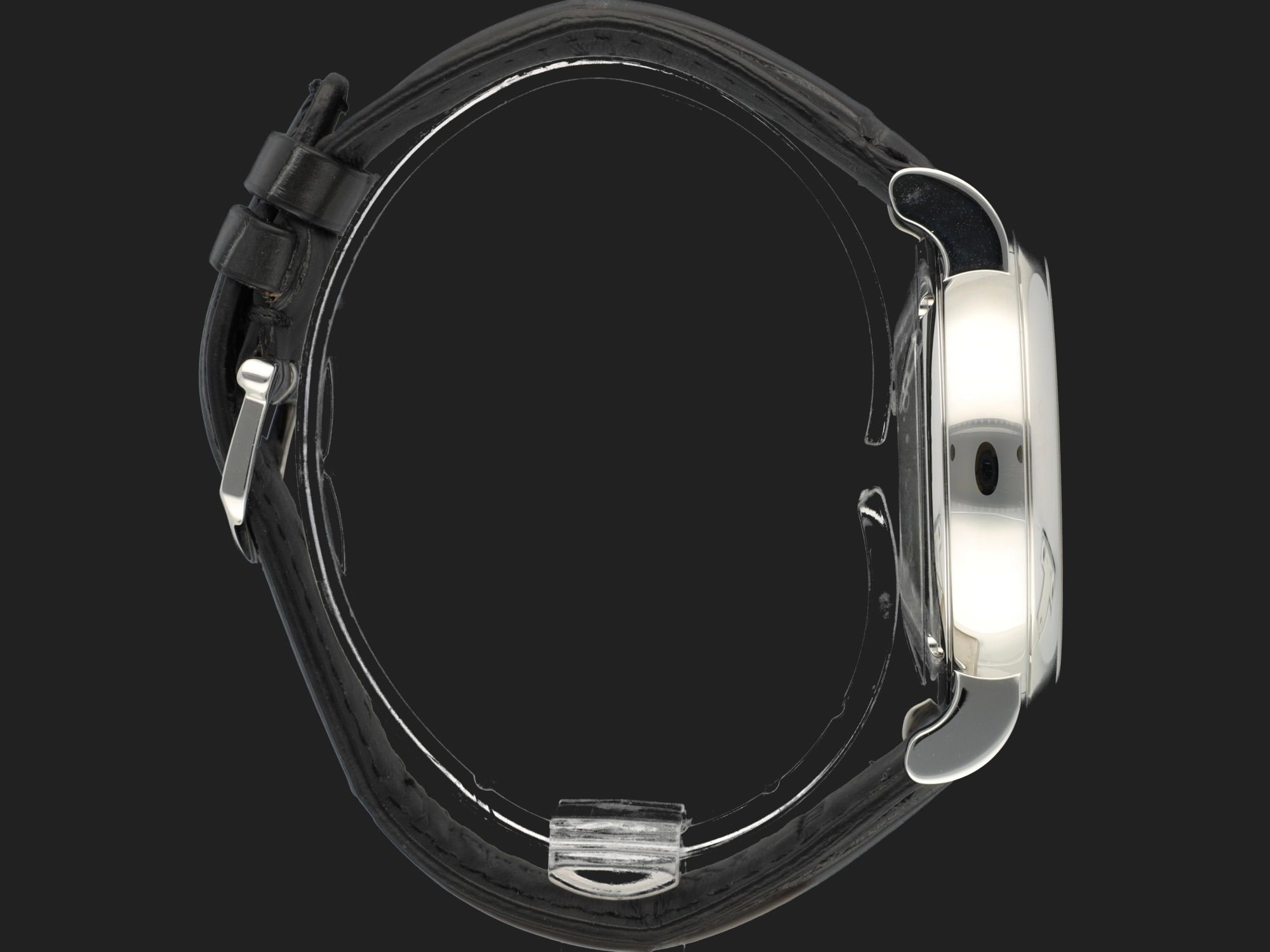 A cor do mostrador é prateada.
