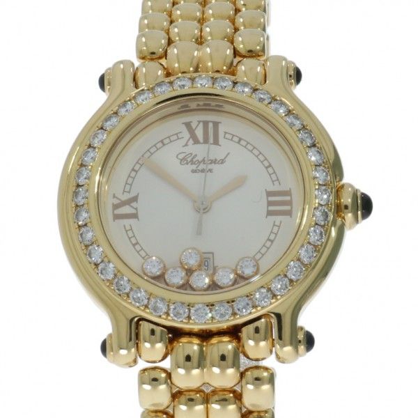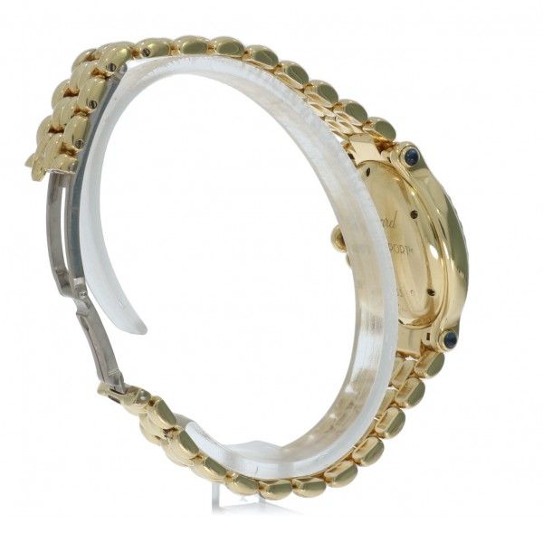 Chopard Happy Sport Midsize Diamonds 27/6144-23. Barely worn big model Chopard Happy Sport in yellow gold with moving diamonds. Original fabric mounted with diamonds at the bezel. Comes with a luxery box and a in-store certificate and 12 months warranty of our shop.