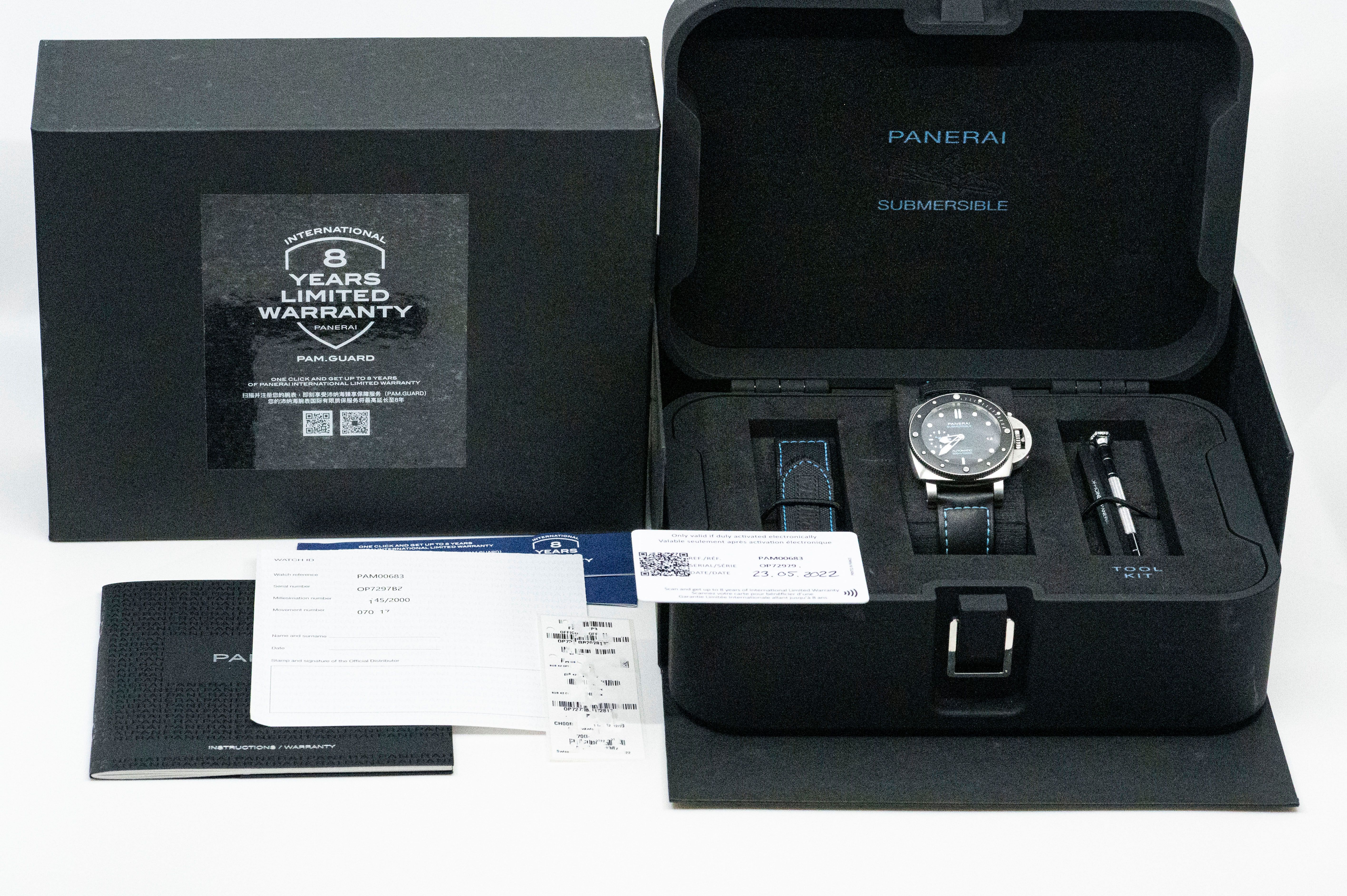 Limited Officine Panerai Submersible | reference PAM00683 | in steel | Panerai automatic calibre OP XXXIV | diameter of 42 mm | original rubber strap with original Panerai pin buckle, the original Panerai Nato strap is enclosed | good worn condition | enclosed original Panerai box and outer box - booklet / operating instructions - sticker - certificate - warranty card - accessories - additional Panerai bracelet - screwdriver - tool for spring bars.