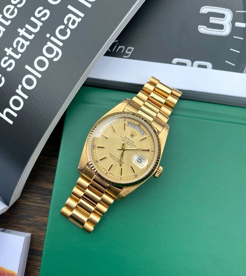 De Rolex Day-Date 18038 is een verzamelobject vanwege zijn luxe en klassieke uitstraling, vaak gedragen door prominente figuren. Het is een van de meest gewilde vintage modellen van Rolex.