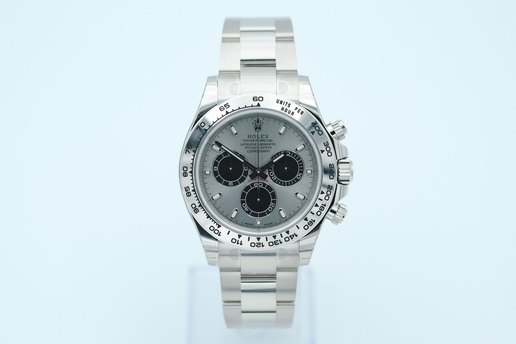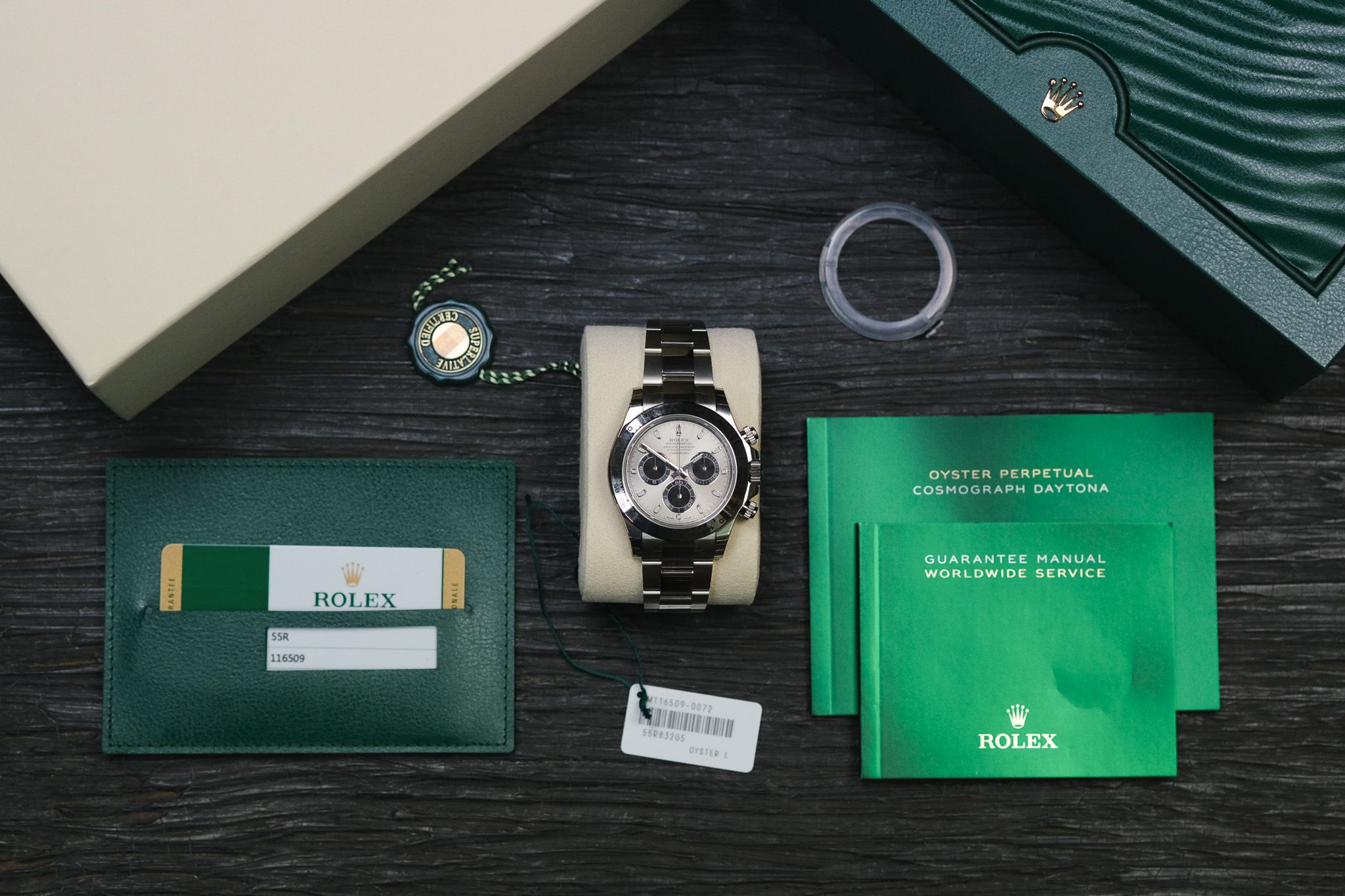 Our Rolex Daytona from 2017 offered here comes in a full set and is still fully stickered.