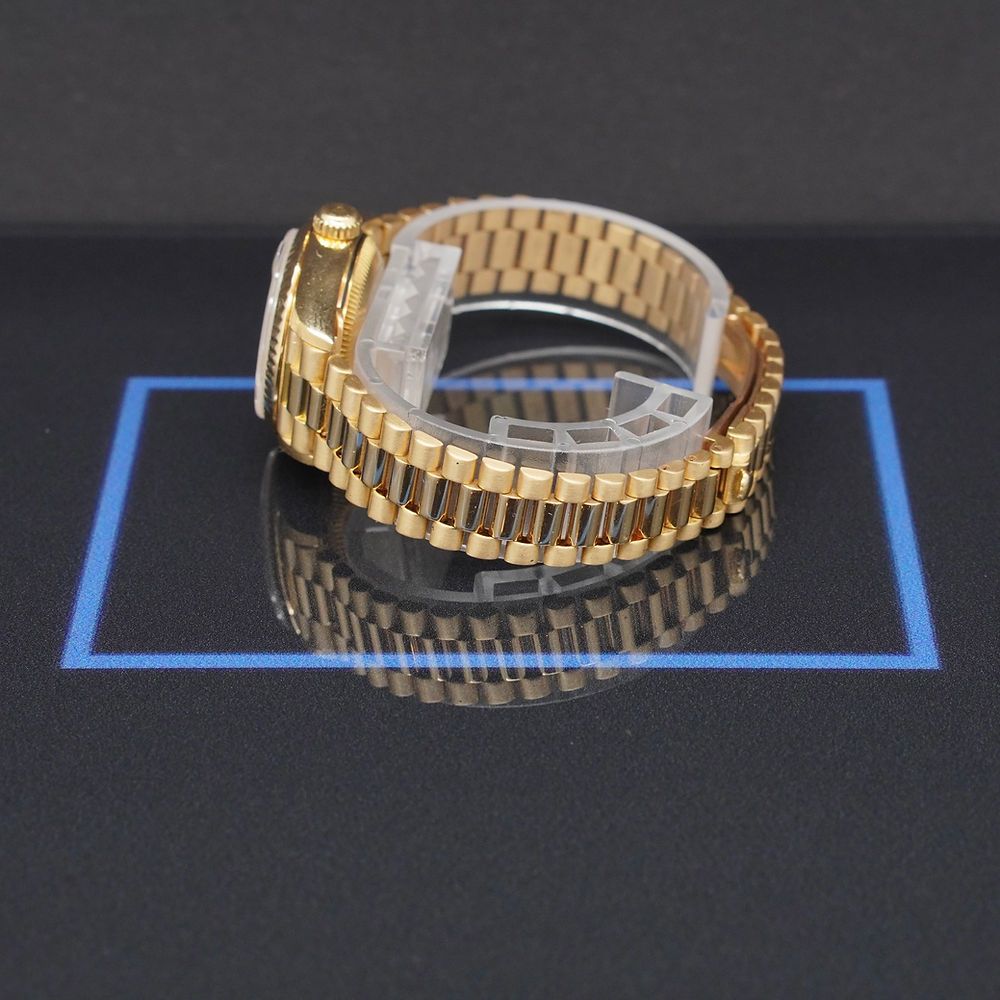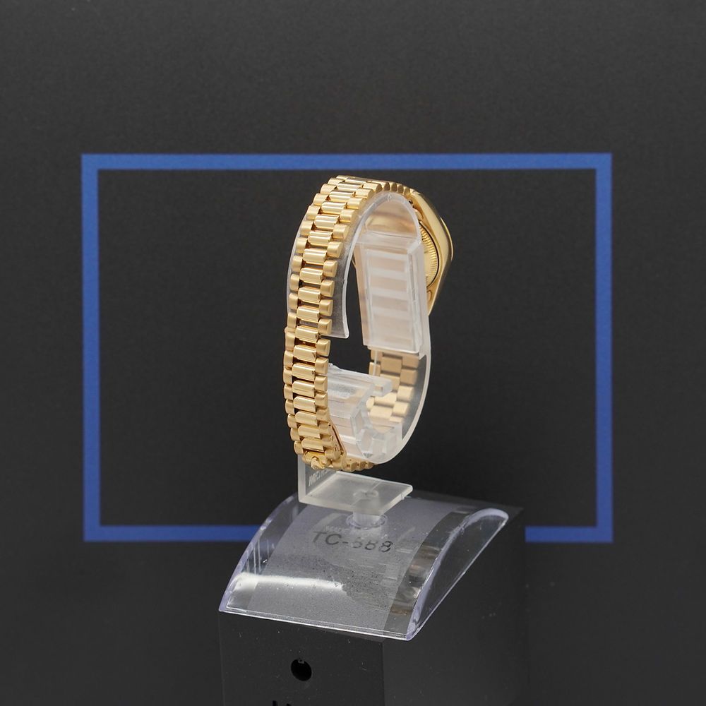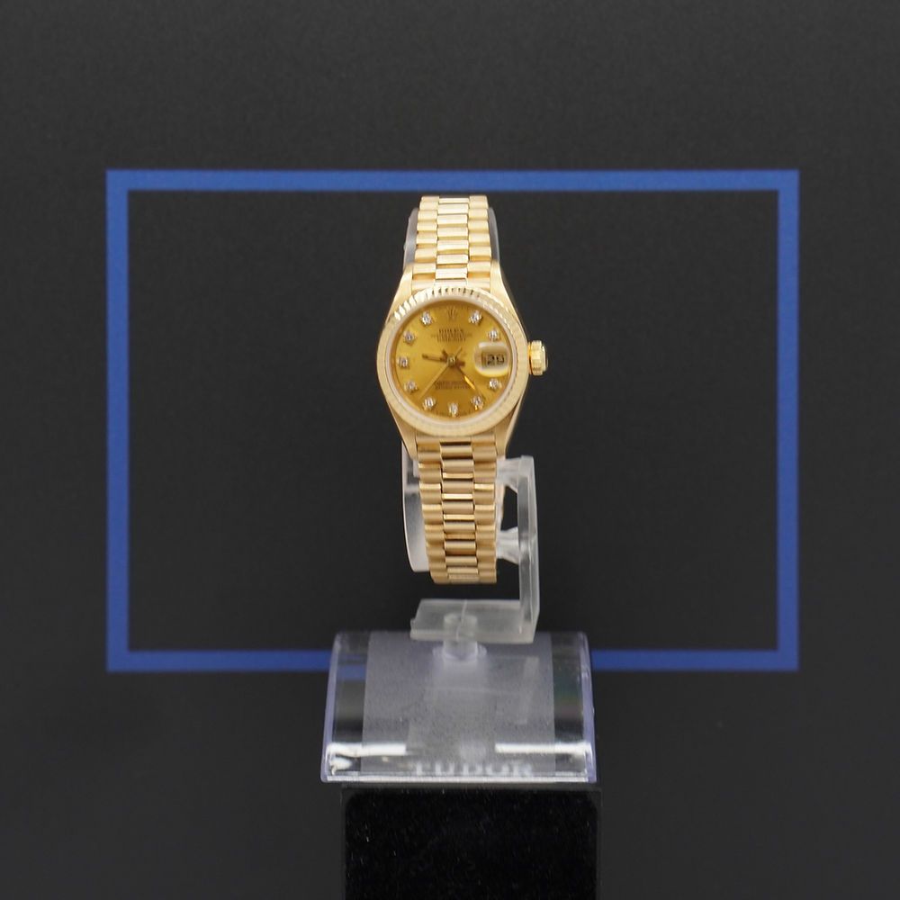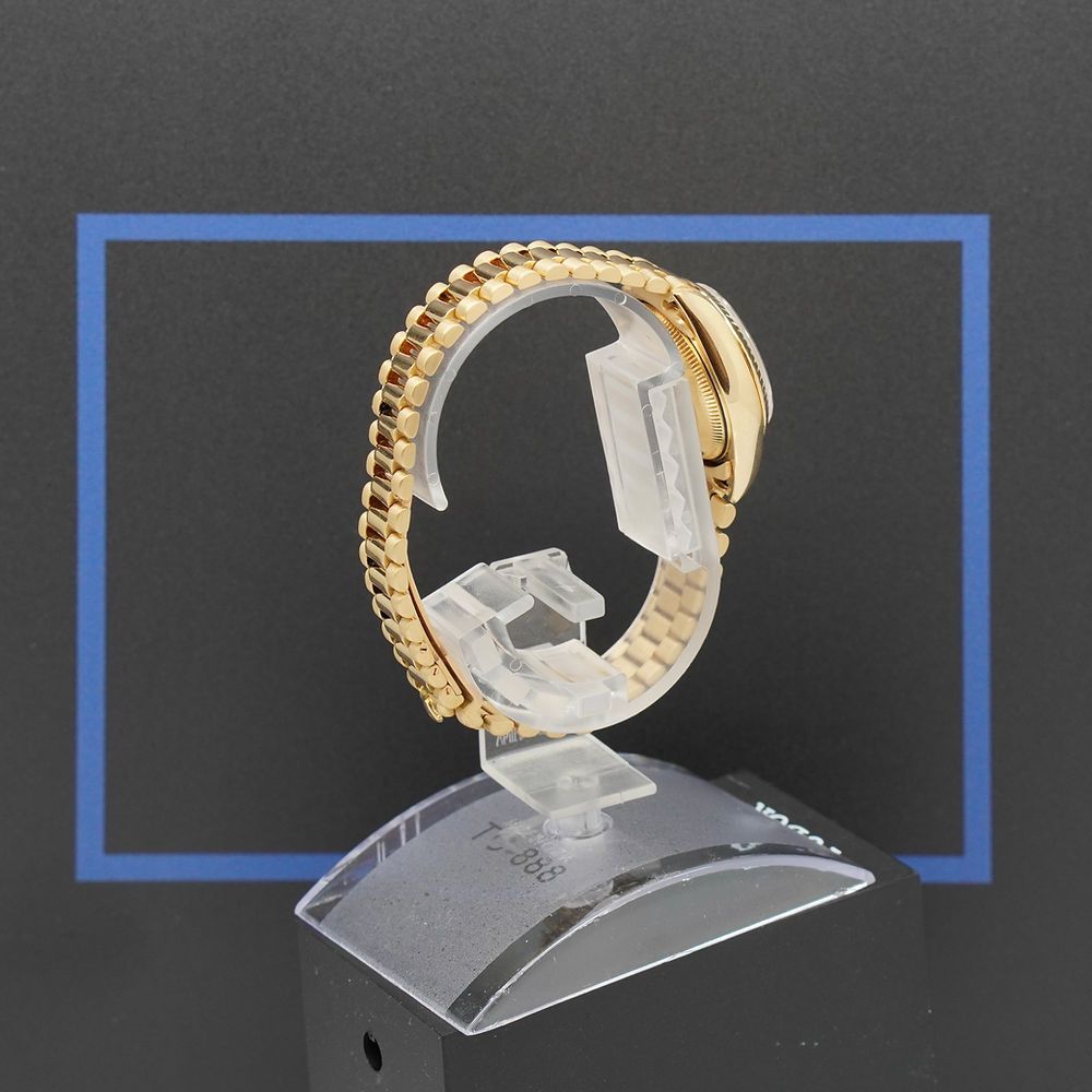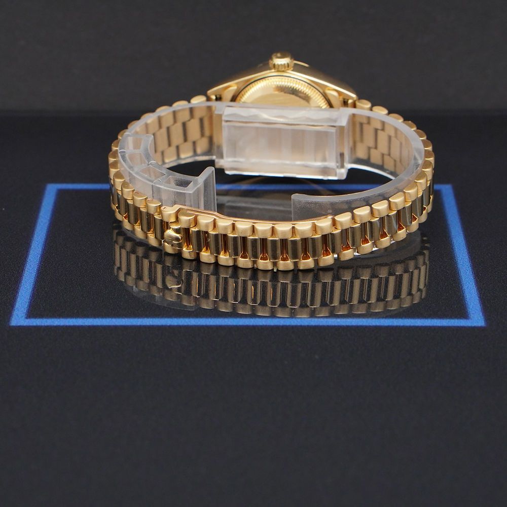 Rolex Lady-Datejust Ref. 69178 | Dia Dial | from 1987 | Box & Papers. WATCH DATA: Internal ID: 168 Manufacturer: Rolex Model: Lady Datejust 26 Diamond Reference: 69178 Warranty: 24 months Movement caliber: 2135 - 29 Jewels Scope of delivery: box & papers Case diameter: 26mm Strap attachment width: 13mm Bracelet: solid Rolex Presidentband Watch material: Yellow gold Winding: automatic movement Dial: gold with diamonds Lugs: not solid Glass: sapphire crystal Year of manufacture 1986 CONDITION OF THE WATCH AND WORK PERFORMED * The watch is in good condition * Watch has been checked for authenticity * Movement has been checked for accuracy GENERAL INFORMATION: * FREE EXPRESS SHIPPING WITHIN GERMANY EUROPE* Images: The images shown are not archive images! We photograph each watch model as accurately as possible. Since stains and shadows sometimes cannot be avoided, please call us or write us a message if a picture is not entirely clear to you. Warranty: void if the watch is opened by another watchmaker Waterproofing: not a permanent feature; Annual inspection recommended. The goods offered are subject to differential taxation in accordance with Section 25a