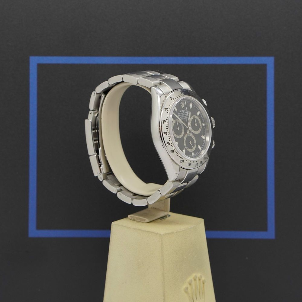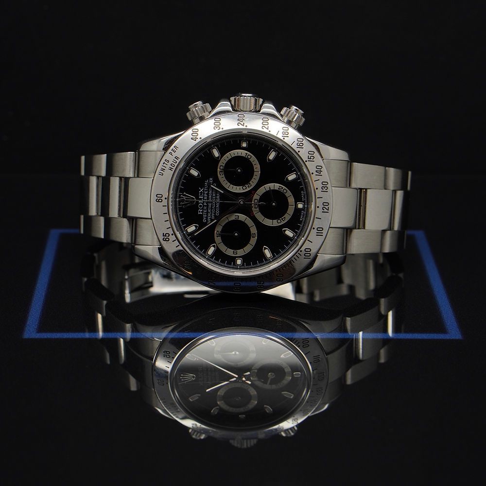 Rolex Daytona | Ref. 116520 | from 2003 | with Rolex box. WATCH DATA: Internal ID: 173 Manufacturer: Rolex Model: Oyster Perpetual Daytona Reference: 16520 Movement caliber: 4130 - 31 Jewels Box contents: Rolex box Case diameter: 40mm Bracelet: solid Rolex Oyster bracelet Watch material: stainless steel Winding: automatic movement Dial: black Lugs: solid Glass: sapphire crystal Year of manufacture: 2003 Warranty 24 months CONDITION OF THE WATCH AND WORK PERFORMED * The watch is in very good condition * Watch has been checked for authenticity * Movement has been checked for accuracy GENERAL INFORMATION: *FREE EXPRESS SHIPPING WITHIN EUROPE* Pictures: The images shown are not Archive images! We photograph each watch model as accurately as possible. Since stains and shadows sometimes cannot be avoided, please call us or write us a message if a picture is not entirely clear to you. Warranty: void if the watch is opened by another watchmaker Waterproofing: not a permanent feature; Annual inspection recommended. The goods offered are subject to differential taxation in accordance with Section 25a. Errors and typographical errors reserved.