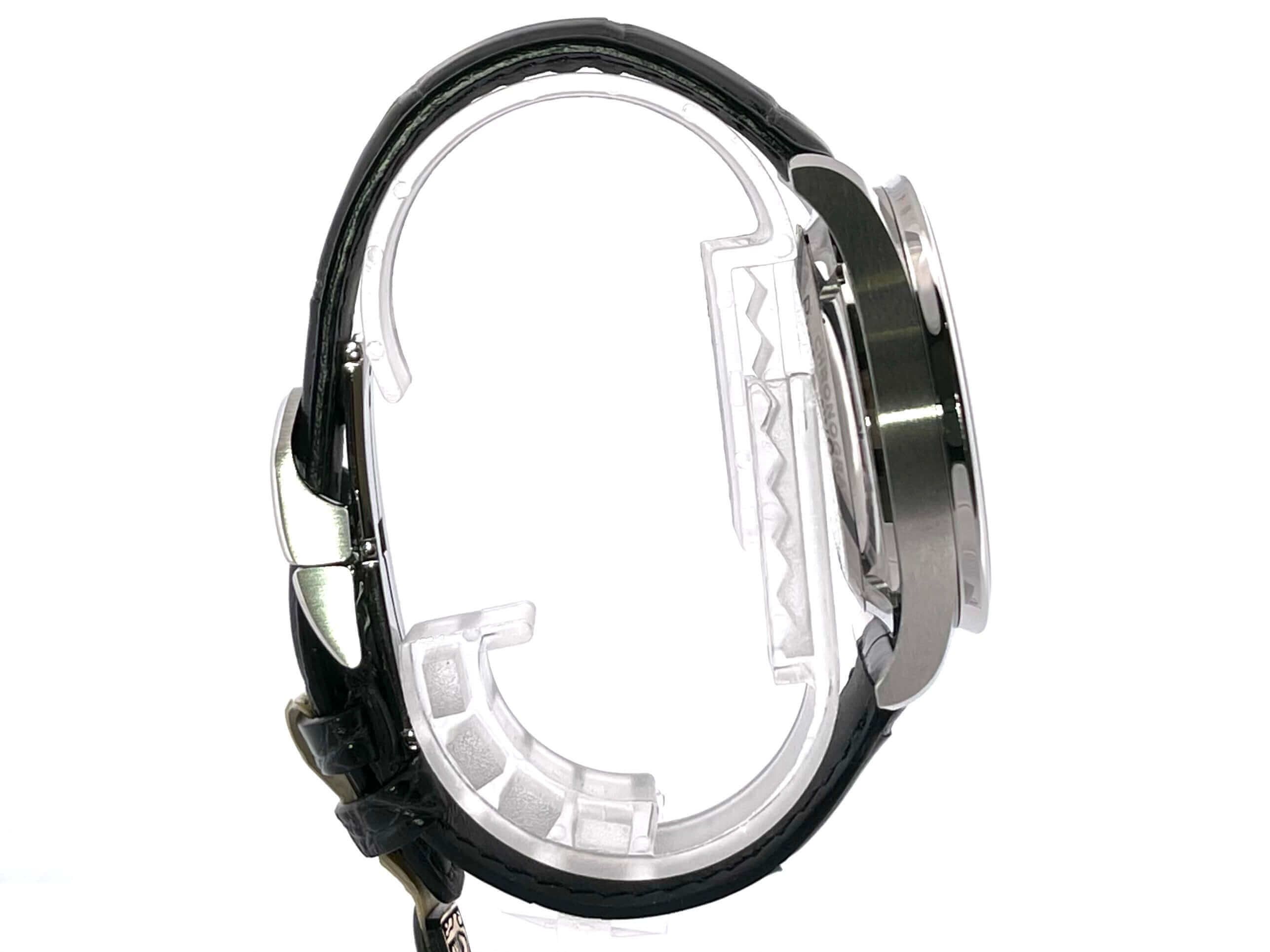 IWC Portuguese Chronograph Ref. IW371604 Case made of polished and satin-finished stainless steel, case diameter 41 mm, case height 13 mm, black alligator leather strap with folding clasp, silver-colored dial with applied Arabic numerals, automatic movement, caliber IWC 69355, 27 jewels, 28,800 A/h, power reserve approx. 46 hours, chronograph, small seconds , scratch-resistant sapphire crystal, stainless steel base with viewing window, waterproof up to 3 bar.