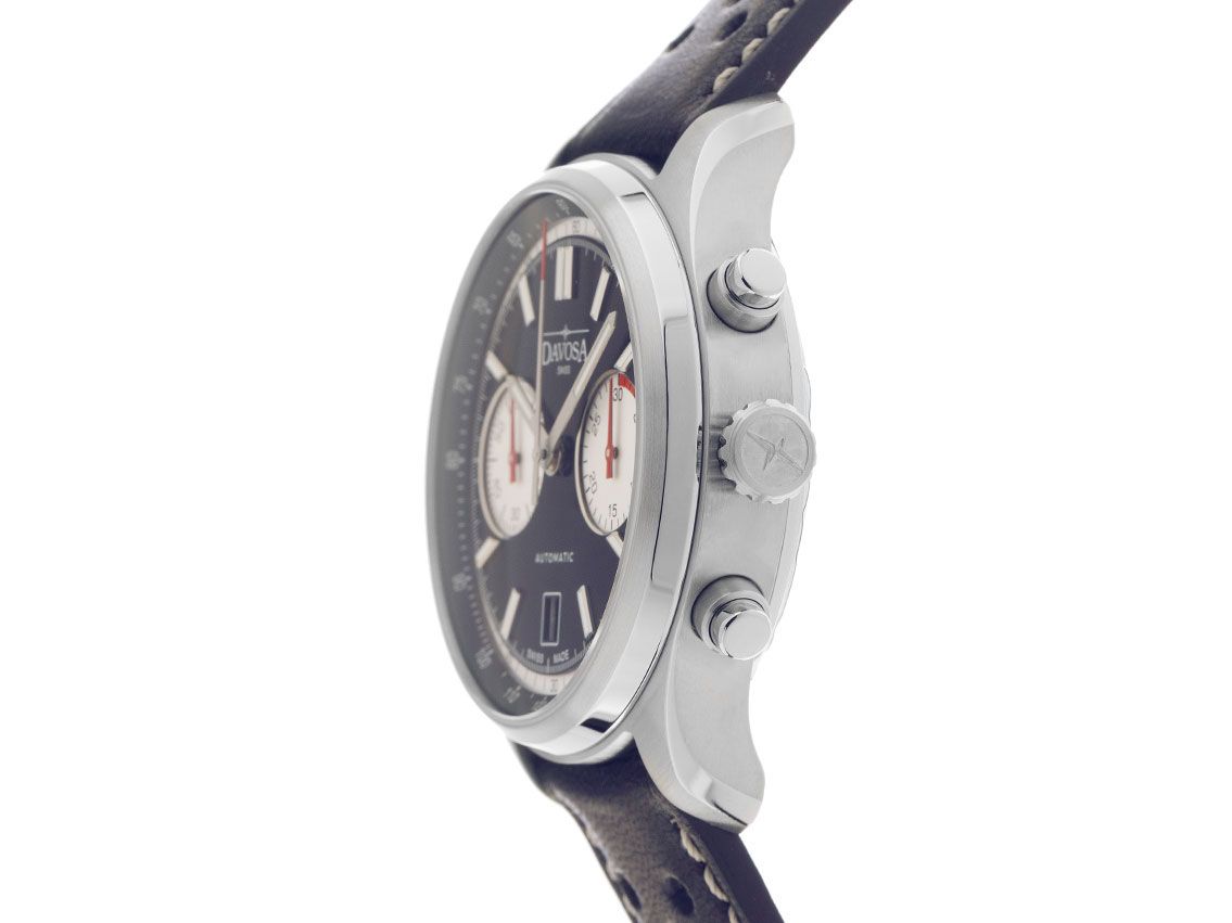 Davosa Newton Pilot Rally Chronograph Stahl Automatik Armband Leder