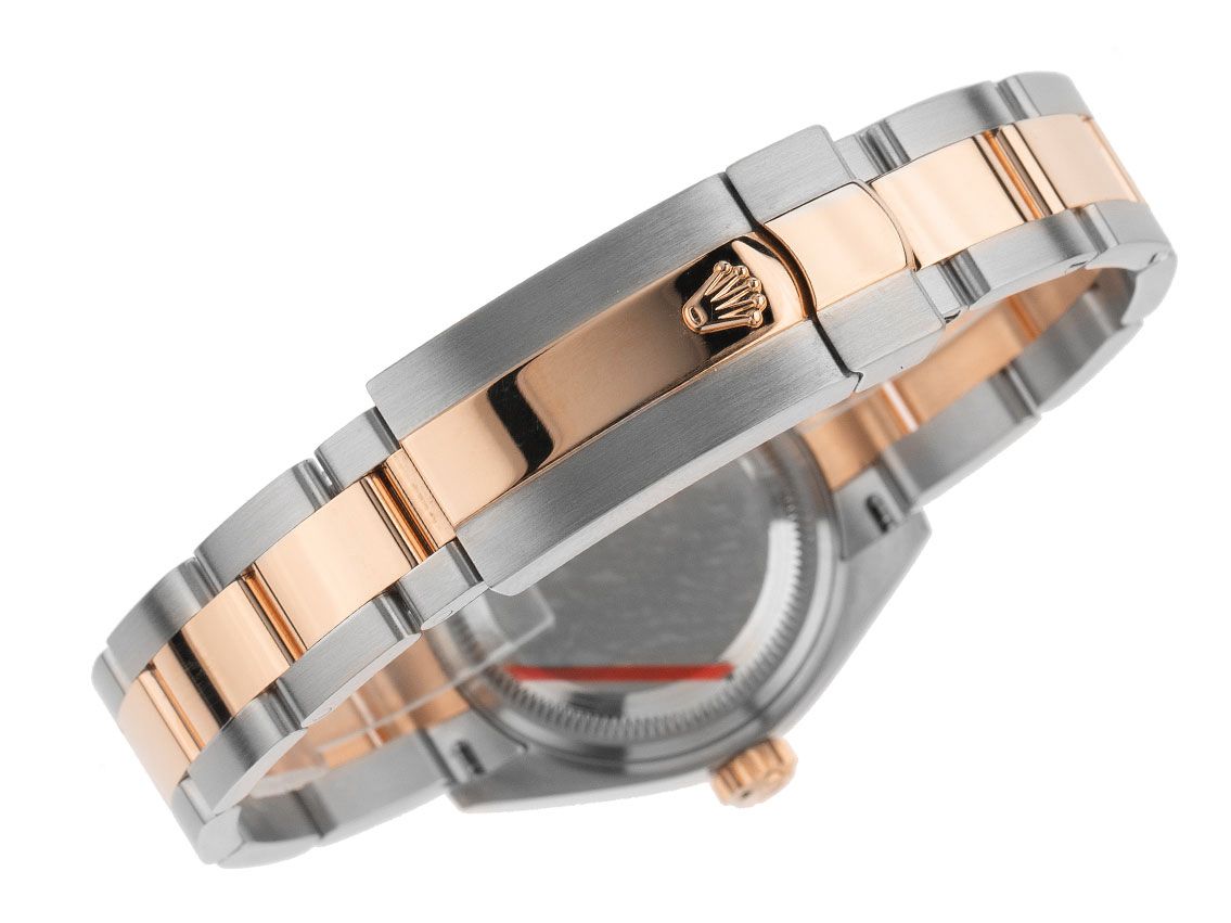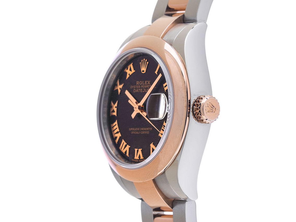 Gehäuse Edelstahl poliert und satiniert, Gehäusedurchmesser ohne Krone 28mm, Gehäusehöhe 10,8mm. Lünette 18kt Roségold Everose bombiert und poliert. Armband Oyster Edelstahl / 18kt Roségold Everose poliert und satiniert, Faltschließe Edelstahl / 18kt Roségold Everose mit Hersteller-Logo. Zifferblatt schokobraun mit aufgesetzten roségoldenen römischen Ziffern und roségoldenen Zeigern. Uhrwerk Automatik, Chronometer mit Zeugnis, Rolex Manufakturkaliber 2236 mit 31 Edelsteinen. Anzeige von Stunde, Minute und Sekunde über Zeiger aus der Mitte mit Sekundenstopp zur sekundengenauen Einstellung der Uhrzeit, Datumsanzeige mit Schnellverstellung unter Glaslupe bei 3 Uhr. Saphirglas kratzfest. Krone verschraubbar mit Hersteller-Logo. Boden Edelstahl verschraubt. Gewicht der Uhr inklusive Armband 87g, Länge des Armbandes inklusive Gehäuse 180mm. Referenznummer: 279161, Gehäusenummer: C757EXXX, ID: P9396172000624H-13500, Artikelnummer: 10000075001. Original Rolex Box mit Umkarton und Garantie Papiere von 12/2016, sowie Beschreibung, Ledermäppchen, Rolex Chronometer-Siegel und Tag, LC 200 / Greece EU, Full Set. Kapitalanlage mit Wertsteigerungspotential, aus erster Hand, fast nicht getragen. Wie Neu. Lieferzeit sofort.