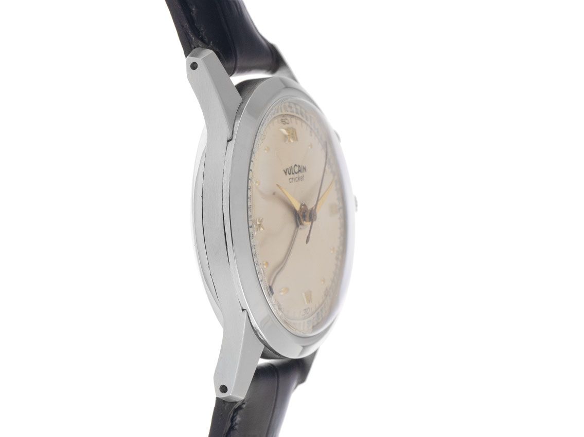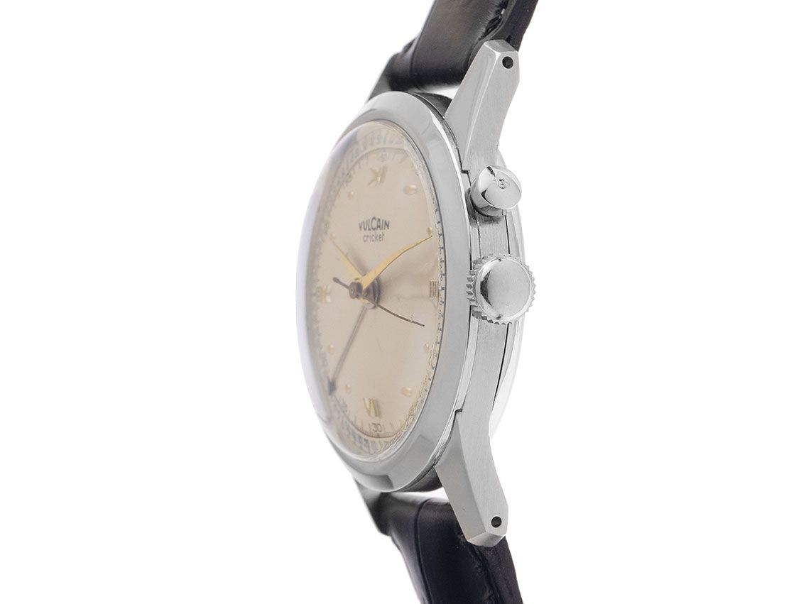 Vulcain Cricket Wecker Stahl Handaufzug Armband Leder