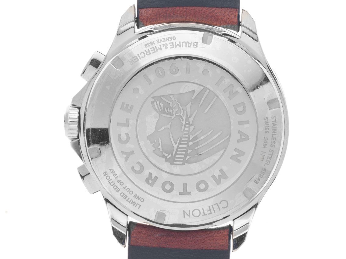 Baume & Mercier Clifton Chronograph Indian Motorcycle Limitiert Stahl Automatik Armband Leder