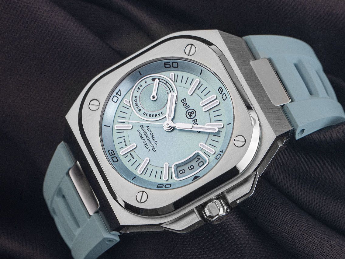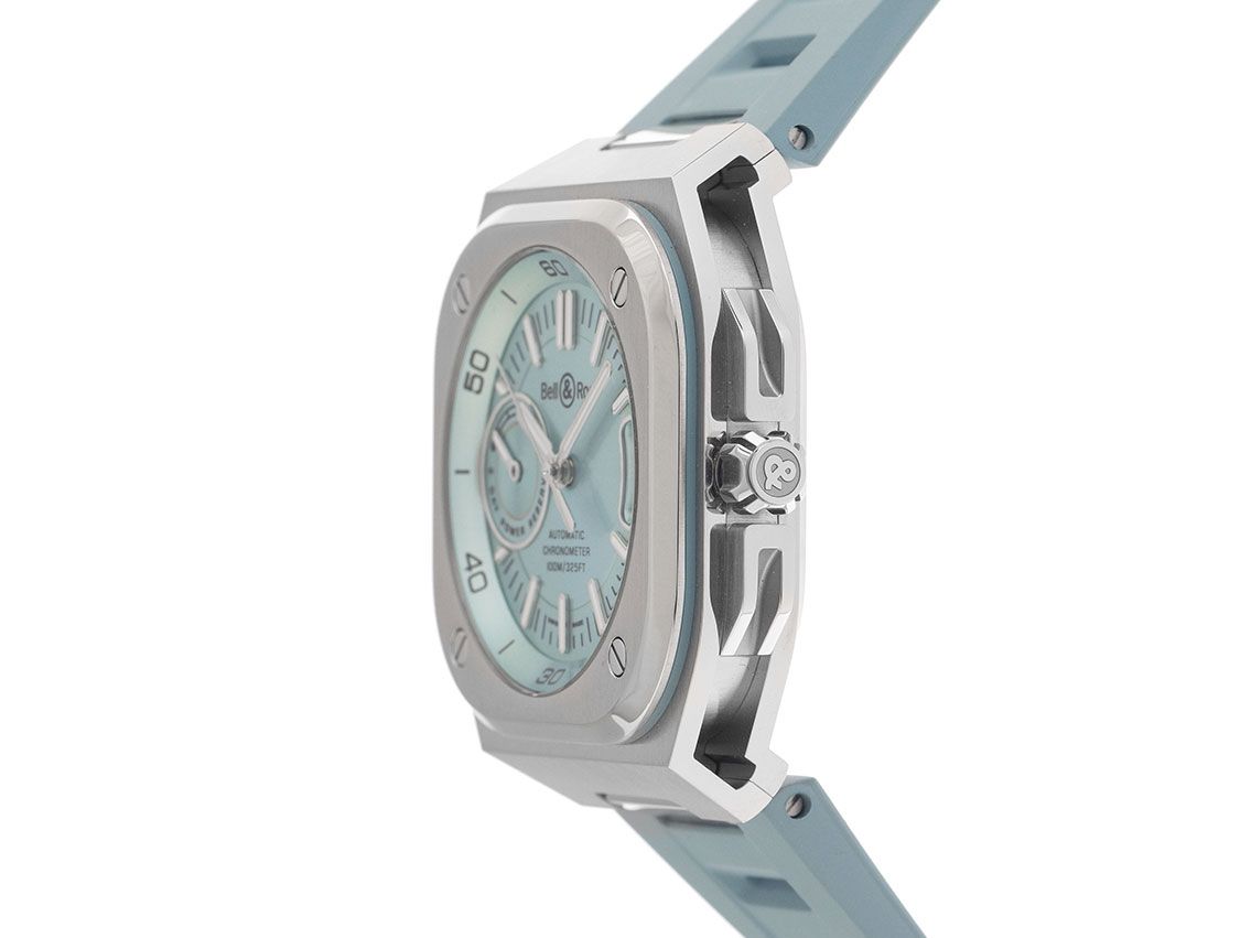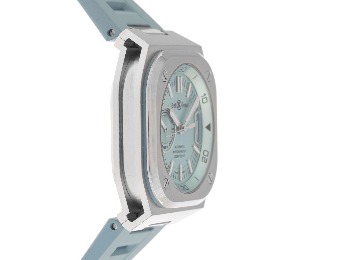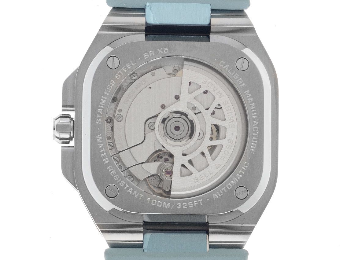 Bell & Ross BR-X5 Ice Blue Steel Stahl Automatik Armband Kautschuk Faltschließe