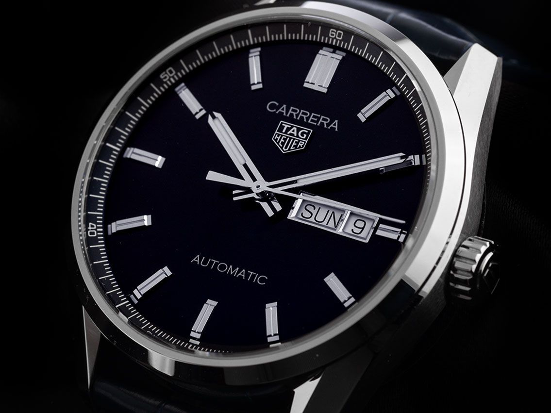 Tag Heuer Carrera Calibre 5 Day Date Stahl Automatik Armband Krokoleder Faltschließe