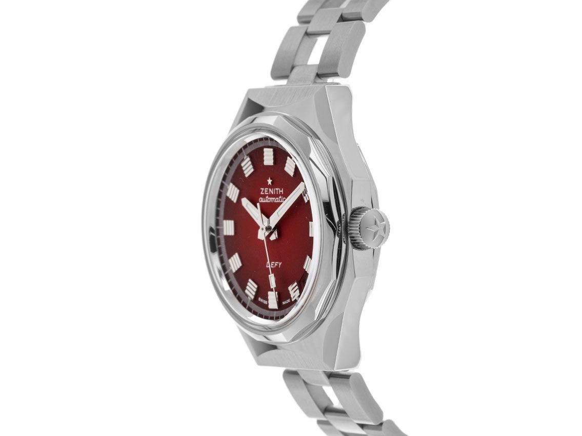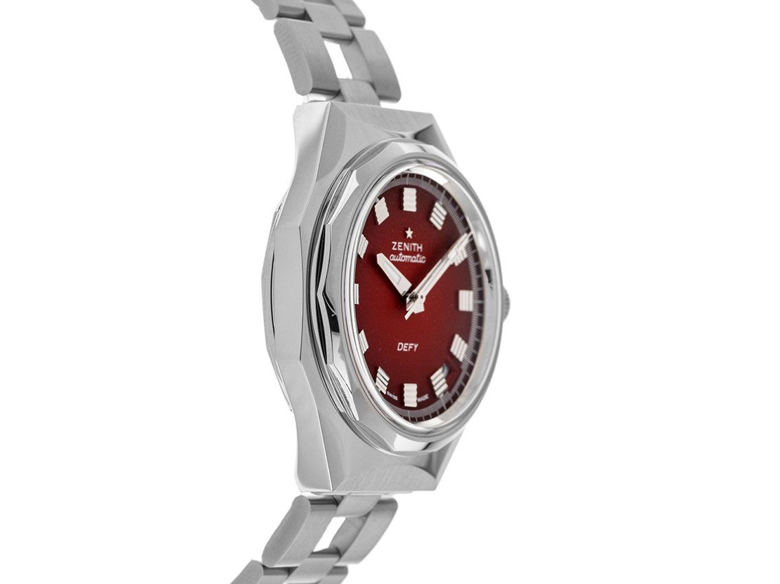 Gehäuse Edelstahl poliert und satiniert, Gehäusedurchmesser ohne Krone 37mm, Gehäusehöhe 13,8mm. Lünette Edelstahl glatt und poliert. Armband Edelstahl satiniert, Sicherheitsfaltschließe Edelstahl mit Hersteller-Logo. Zifferblatt rot mit aufgesetzten Indexen und edelstahl Leuchtzeigern. Uhrwerk Automatik, Manufakturkaliber Zenith Elite 670 mit 27 Edelsteinen, Gangreserve ca. 50 Stunden. Anzeige von Stunde, Minute und Sekunde über Zeiger aus der Mitte mit Sekundenstopp zur sekundengenauen Einstellung der Uhrzeit, Datumsanzeige mit Schnellverstellung zwischen 4 und 5 Uhr. Saphirglas kratzfest und gewölbt. Krone verschraubbar mit Hersteller-Logo. Boden Edelstahl verschraubt und graviert mit Saphirglas Sichtfenster. Gewicht der Uhr inklusive Armband 121g, Länge des Armbandes inklusive Gehäuse 205mm. Wasserdicht bis 30 ATM. Referenznummer: 03.A3642.670/3691.M3642, ID: ST116099961224H-7500, Artikelnummer: 10000077723. Original Zenith Box mit Umkarton und Garantie Papiere von Dezember 2024 sowie Beschreibung, Full Set. Ungetragen. Neuheit. Lieferzeit sofort.