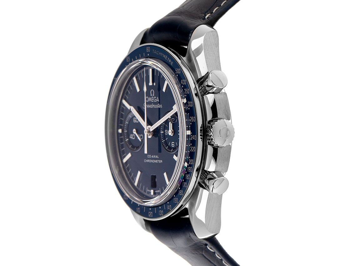 Gehäuse Titan poliert und satiniert, Gehäusedurchmesser ohne Krone 44,6mm, Gehäusehöhe 16,3mm. Lünette Keramik blau mit Tachymeterskala. Armband Krokoleder dunkelblau mit heller Ziernaht, Anstoßbreite 21mm, Omega Faltschließe Titan mit Hersteller-Logo. Zifferblatt blau mit aufgesetzten Indexen und Edelstahl Zeigern. Uhrwerk Automatik, Chronograph, Kaliber Omega 9300 mit 54 Edelsteinen. Anzeige von Stunde und Minute über Zeiger aus der Mitte, kleine Sekunde mit Sekundenstopp zur sekundengenauen Einstellung der Uhrzeit bei 9 Uhr, Datumsanzeige mit Schnellverstellung bei 6 Uhr. Saphirglas kratzfest, doppelseitig entspiegelt. Krone mit Hersteller-Logo. Boden verschraubt mit Saphirglas Sichtfenster. Gewicht der Uhr inklusive Armband 86g. Referenznummer 311.93.44.51.03.001, Gehäusenummer: 87165XXX, ID: P075590000325H-10500, Artikelnummer: 10000079476. Mit Gangkontrolle und kompletter äußerlichen Aufarbeitung von März 2025. Original Omega Box mit Umkarton und Garantie Papiere von Juni 2021 sowie Watchregister Auszug von März 2025, The Watch Register Zertifikat / ohne Eintrag (Internationale Datenbank für verlorene oder gestohlene Uhren), Full Set. Superschnäppchen, fast nicht getragen. Wie neu. Lieferzeit sofort.