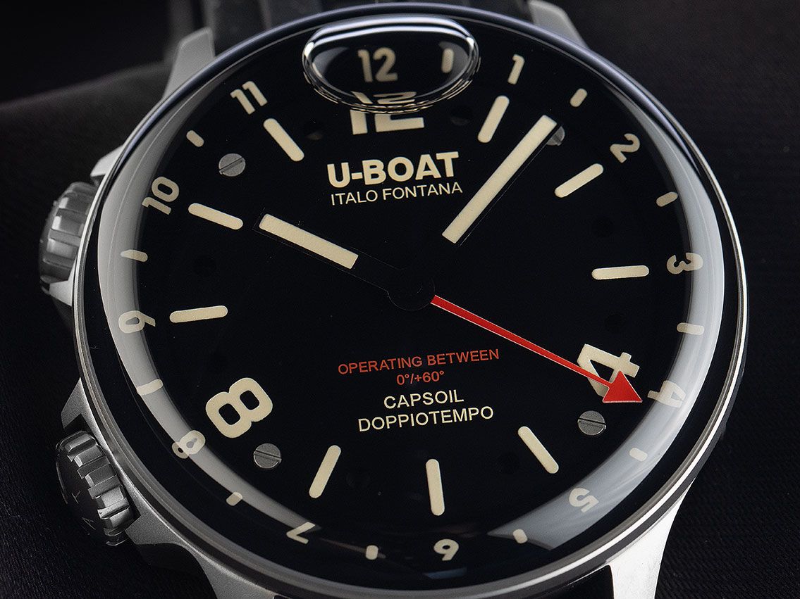 U-Boat Capsoil Doppiotempo SS Stahl elektromechanisch GMT Armband Kautschuk