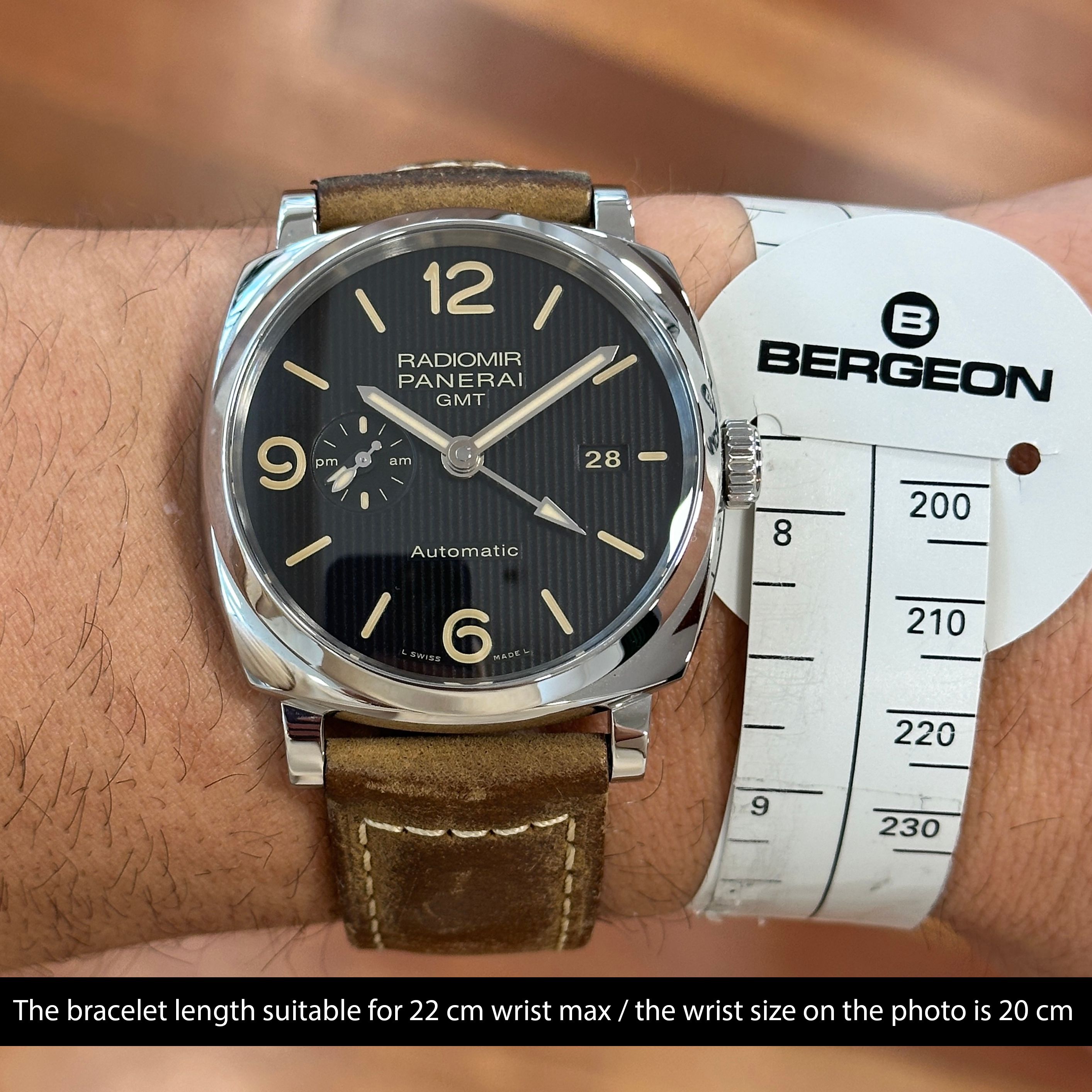 This Panerai Radiomir 1940 3 Days Automatic Gmt PAM 00657 features a Black tapestry dial and is crafted from stainless steel, with a production year of 2020.