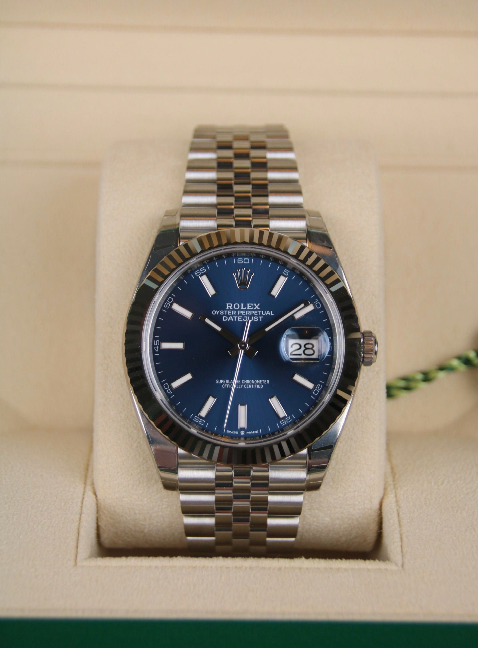 For sale is a brand new and unworn Rolex Datejust 41 with Blue dial, jubilee bracelet and fluted bezel. Comes as a full set including box, papers etc. Bought from the authorized retailer in 2025, Rolex warranty until 2030.