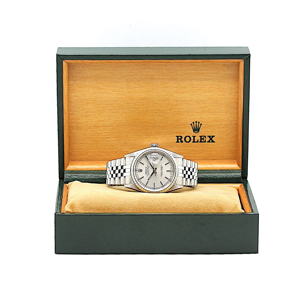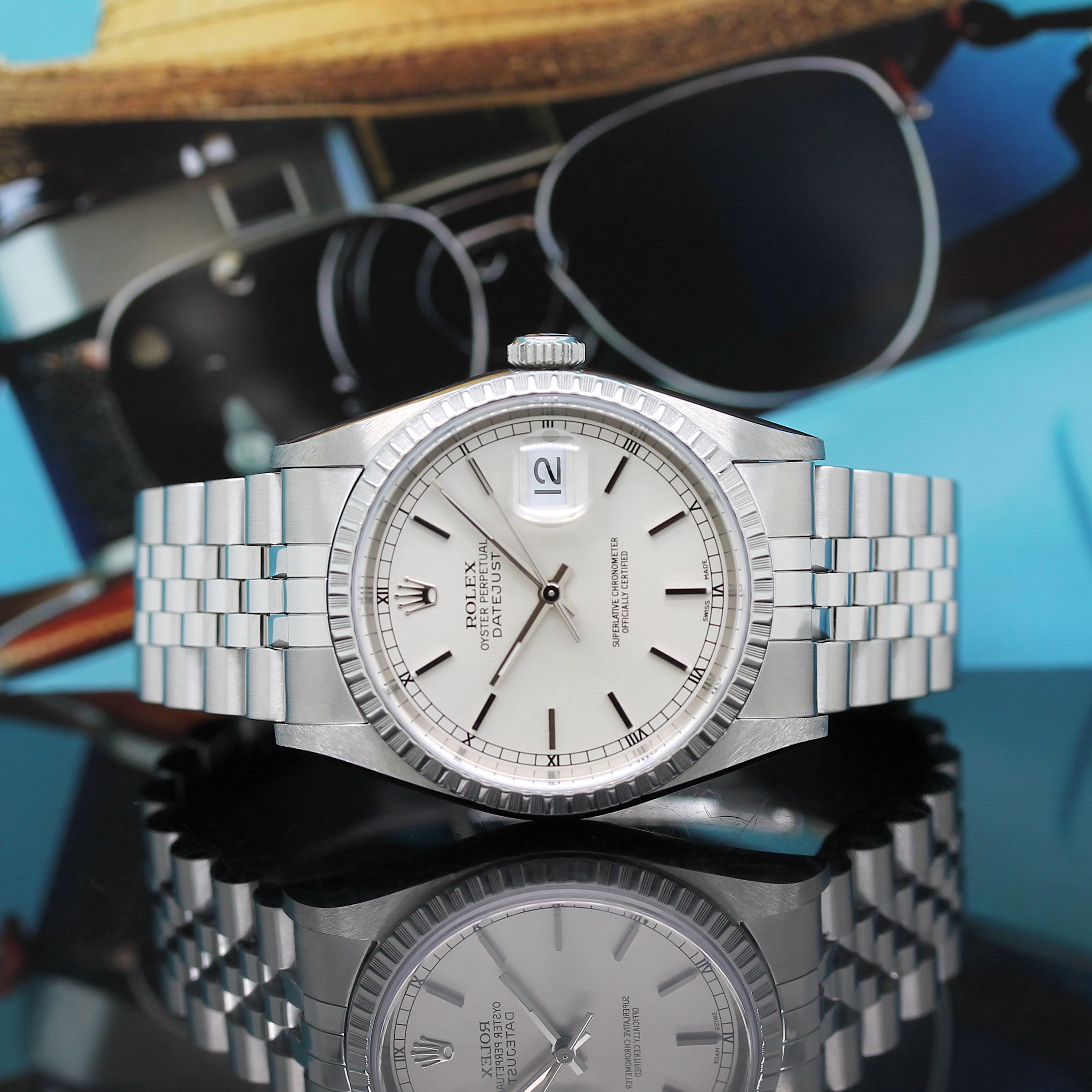 Die Uhr befindet sich in einem dem Alter entsprechend guten Zustand. Sie ist mit einem Automatikwerk ausgestattet. Eine Bereicherung für jeden Uhrensammler und Liebhaber. Alle Funktionen wurden vom Uhrmachermeister überprüft und für einwandfrei befunden. Das Werk wurde im März 2025 geölt und gereinigt. Das Jubileeband ist in Stahl und gebraucht, aber in einem noch sehr guten Zustand ( 16 cm Länge ohne Uhr gemessen ). Sie bieten hier auf eine Wunderschöne und klassische Armbanduhr der Spitzenklasse mit Wiedererkennungswert. Saphirglas . Das Zifferblatt ist silber - farbig. Die Lünette ist aus Edelstahl und geriffelt. Die Datejust Uhr ist ca 24 Jahre alt, und wird in einem gebrauchten Zustand verkauft.