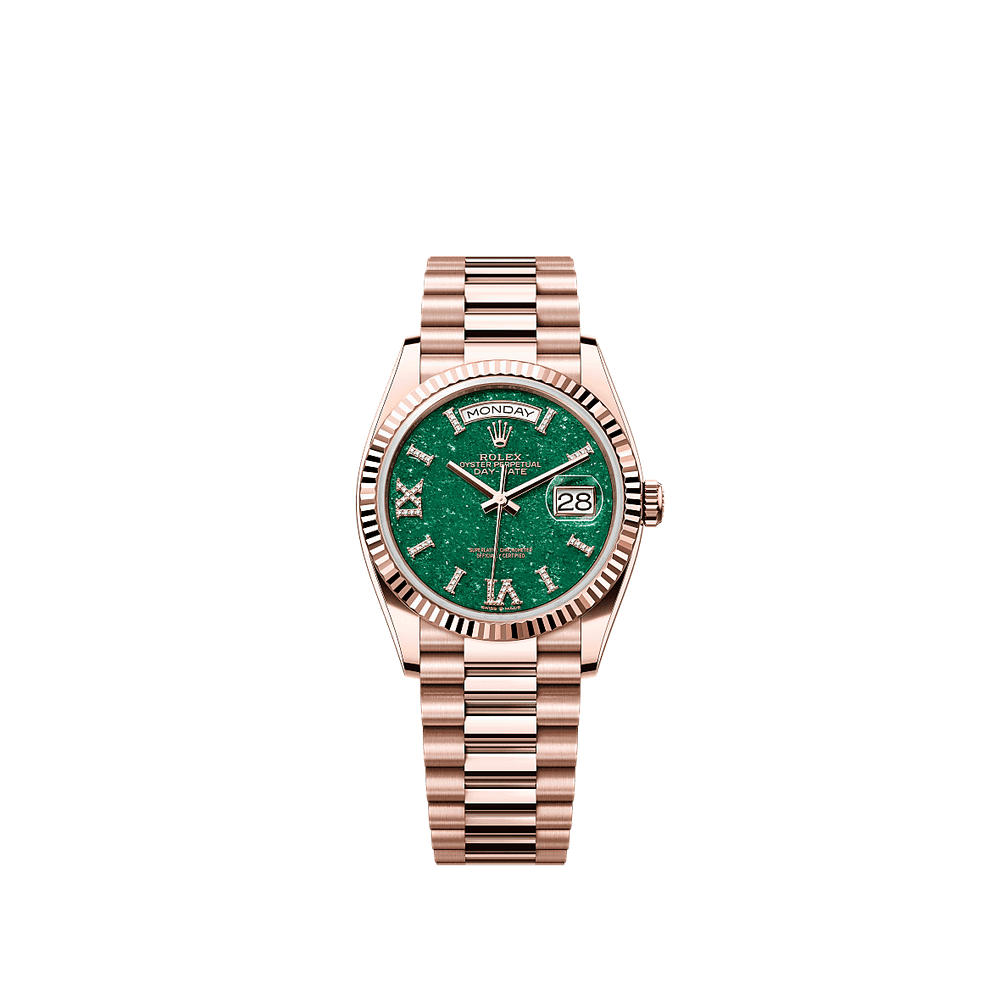 Rolex 128235-0068 Day-Date 36 Everose Gold - Fluted / Green Aventurine / President