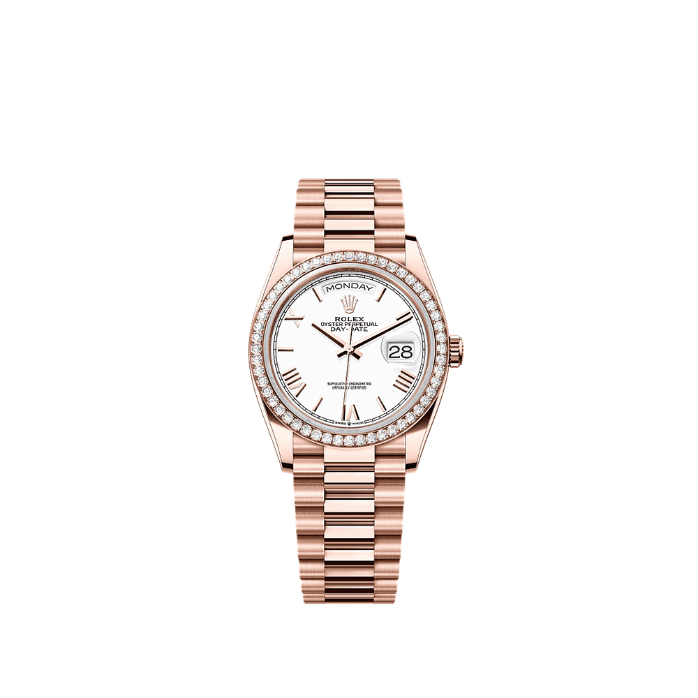 Rolex 128345RBR-0070 - Day-Date 36 Everose Gold / Diamond / White - Roman / President