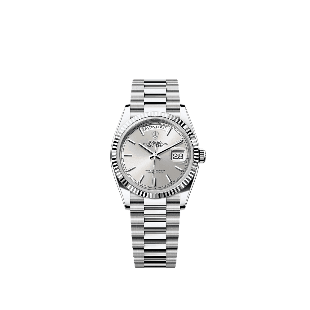 Rolex 128236-0001 Day-Date 36 Platinum - Fluted / Silver/ President