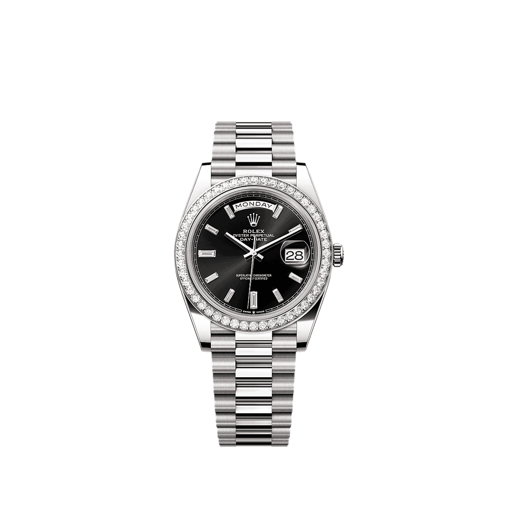 Rolex 228349RBR-0003 - Day-Date 40 White Gold / Diamond / Black - Baguette