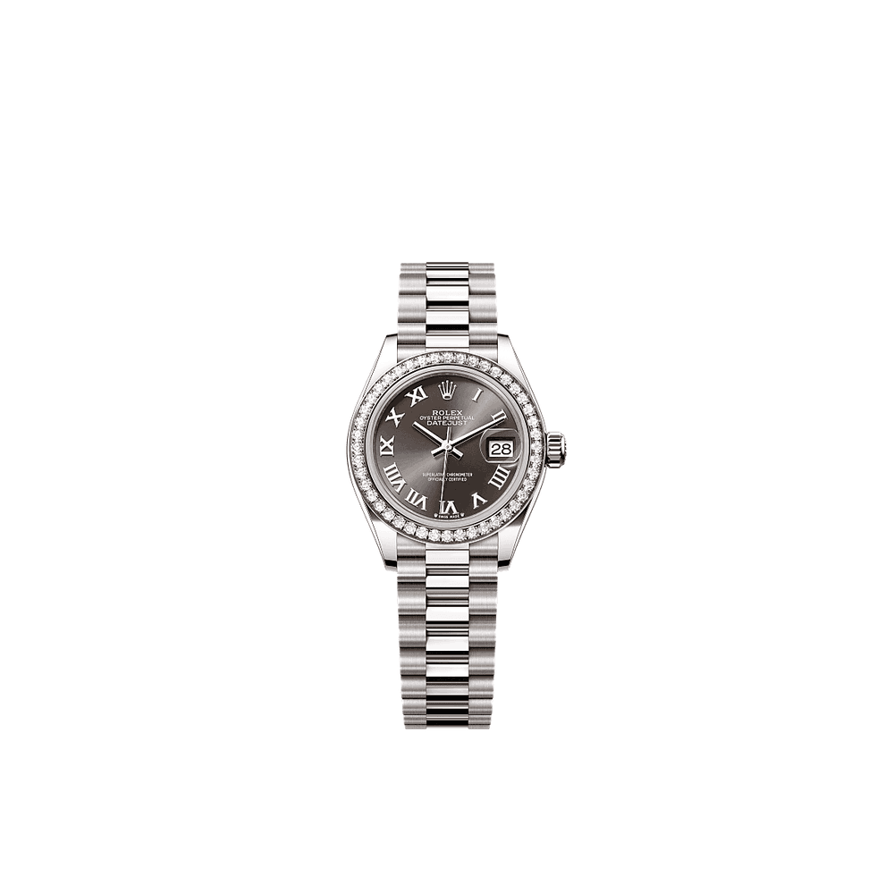 Rolex 279139RBR-0010 Lady-Datejust 28 White Gold - Diamond / President / Grey - Roman