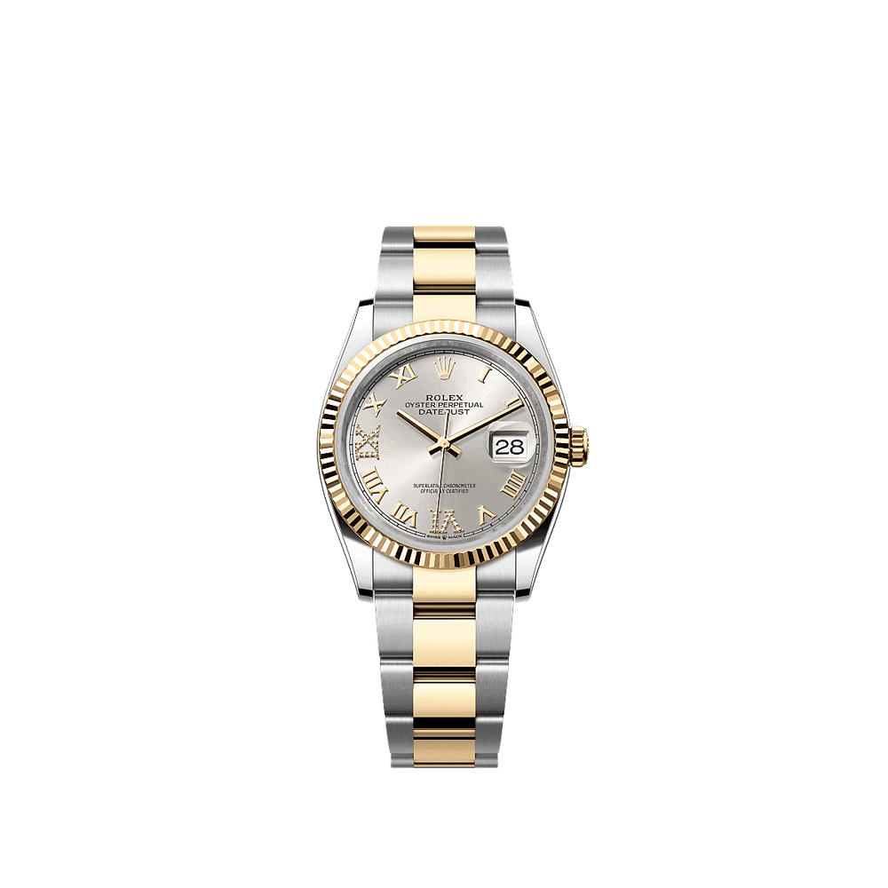Rolex 126233-0032 Datejust 36 Stainless Steel / Yellow Gold / Fluted / Silver Roman / Oyster