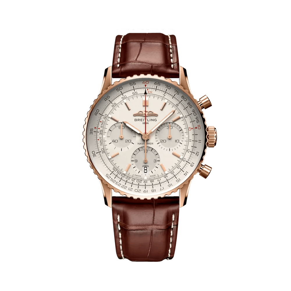 Breitling RB0139211G1P1 Navitimer B01 Chronograph 41 Red Gold / Silver / Alligator - Folding