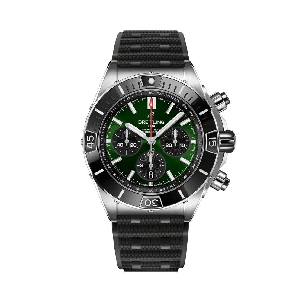 Breitling AB0136251L1S1 Super Chronomat B01 44 Stainless Steel / Green / Rubber Rouleaux