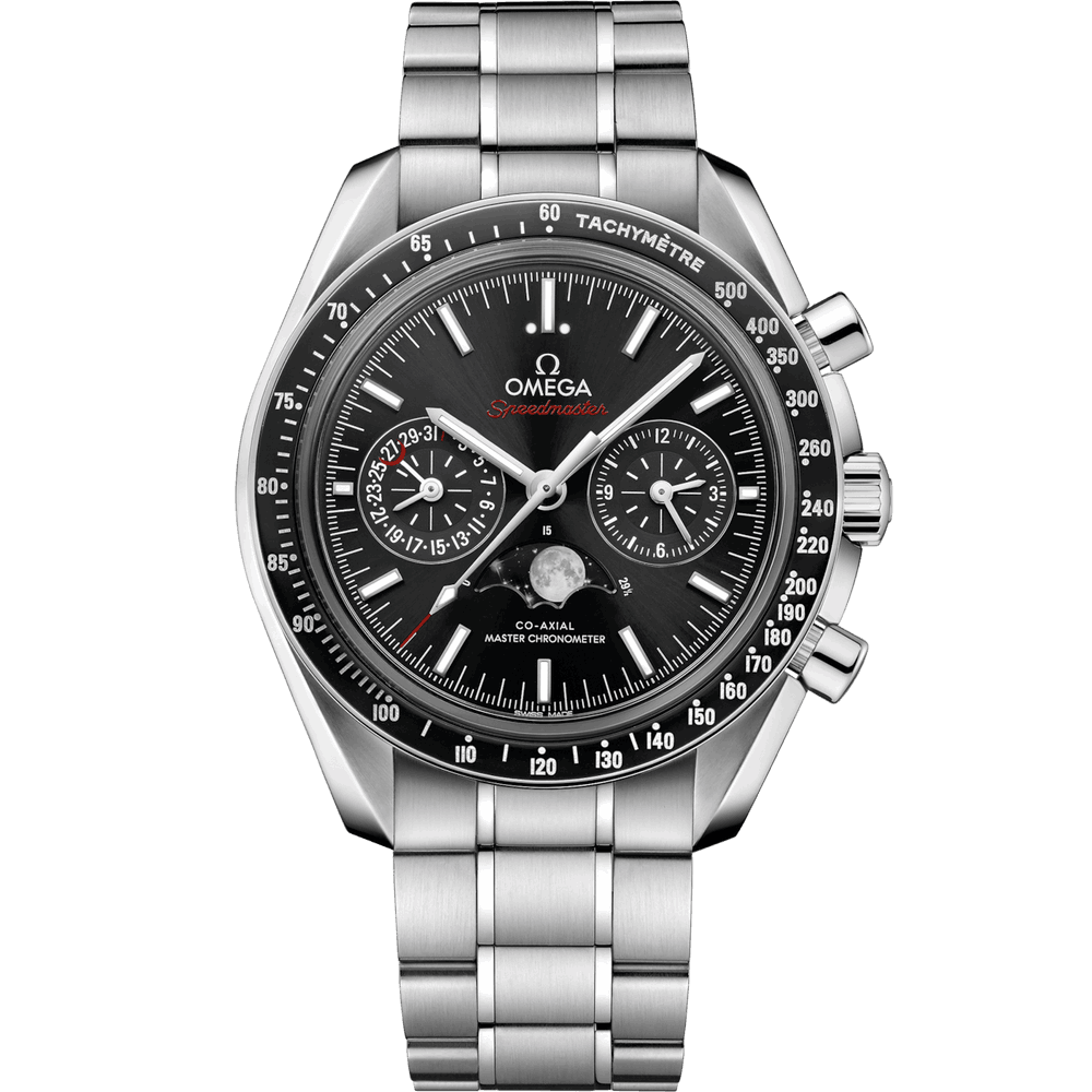 Omega 304.30.44.52.01.001 Speedmaster Moonphase Chronograph Master Chronometer Stainless Steel / Black / Bracelet