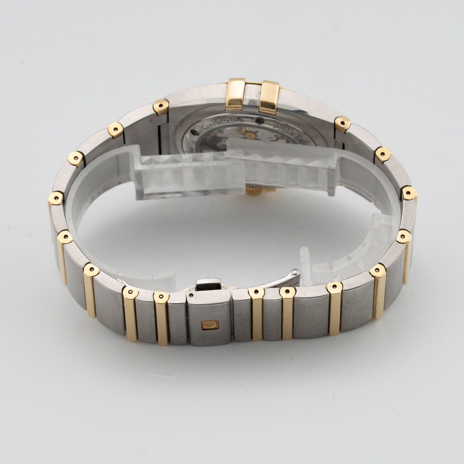 The Omega Constellation Double Eagle from 2007 with the reference 1203.30.00 is an expression of refined elegance, technical precision, and sporty presence. Inspired by Omega's long tradition in golf, this watch combines classic Constellation elements with powerful modernity. Its stainless steel case with integrated lugs blends seamlessly with the solid stainless steel bracelet, ensuring a harmonious, confident appearance on the wrist. The striking bezel with its characteristic Roman numerals contrasts with the silver-colored dial, which has a particularly sophisticated appeal thanks to its fine guilloché work and applied indexes. The automatic movement inside ensures reliable precision and underscores the high technical standards of this sporty yet elegant watch. The clean lines, balanced design, and high-quality materials make the Constellation Double Eagle a timeless companion for every occasion—from the business world to a relaxing weekend. A model that impressively combines style and watchmaking craftsmanship, reflecting Omega's commitment to quality and aesthetics in every facet. You receive a 1-year warranty on the functioning of the movement.