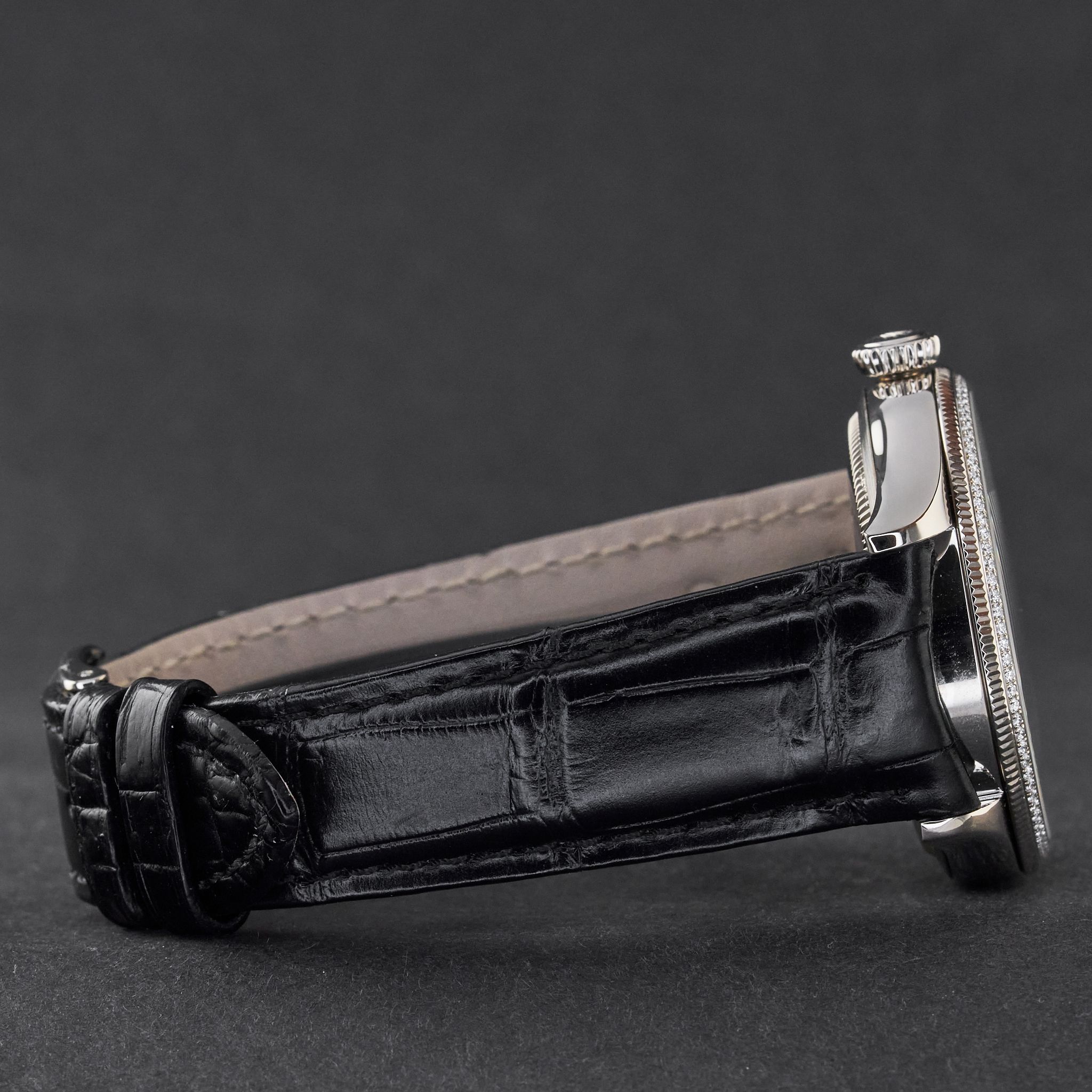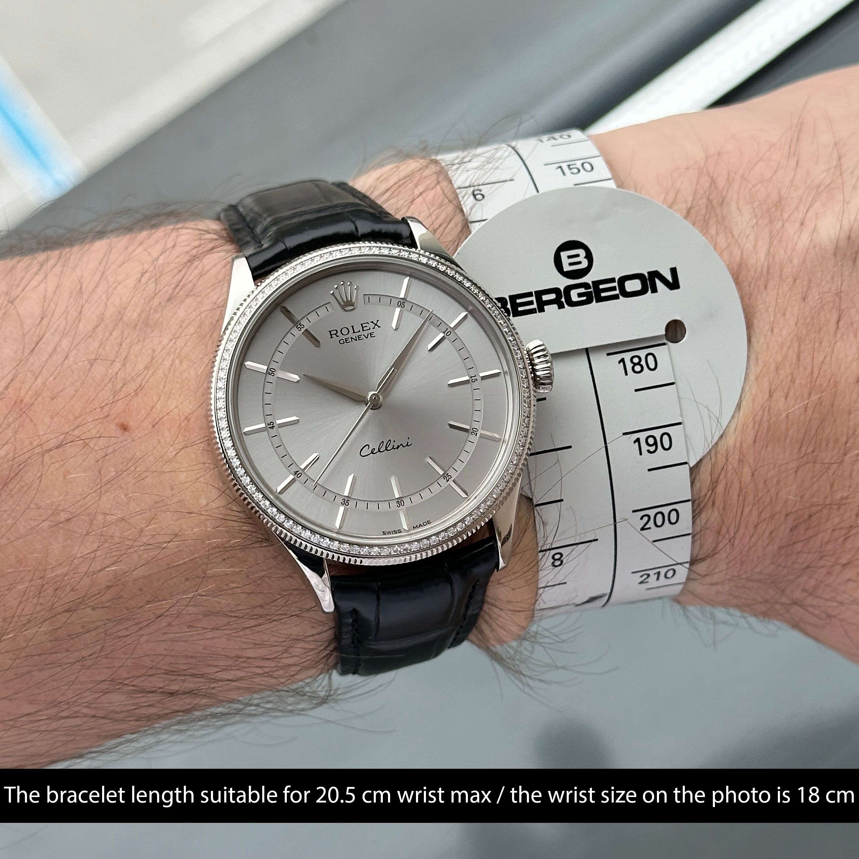 Rolex Cellini Time 50609 – Pure Elegance in Every DetailThis particular Rolex Cellini Time introduced in 2018, is a refined expression of classic watchmaking. The silver sunray dial, slim hour markers, and balanced layout highlight the model’s formal character. The standout feature is the diamond-set bezel, adding a subtle yet luxurious brilliance to the understated design.Perfect for those who appreciate classic style, refined sparkle, and the graceful spirit of Rolex’s most elegant collection.This Rolex Cellini Time 50609 features a Silver dial and is crafted from 18K white gold, with a production year of 2018.