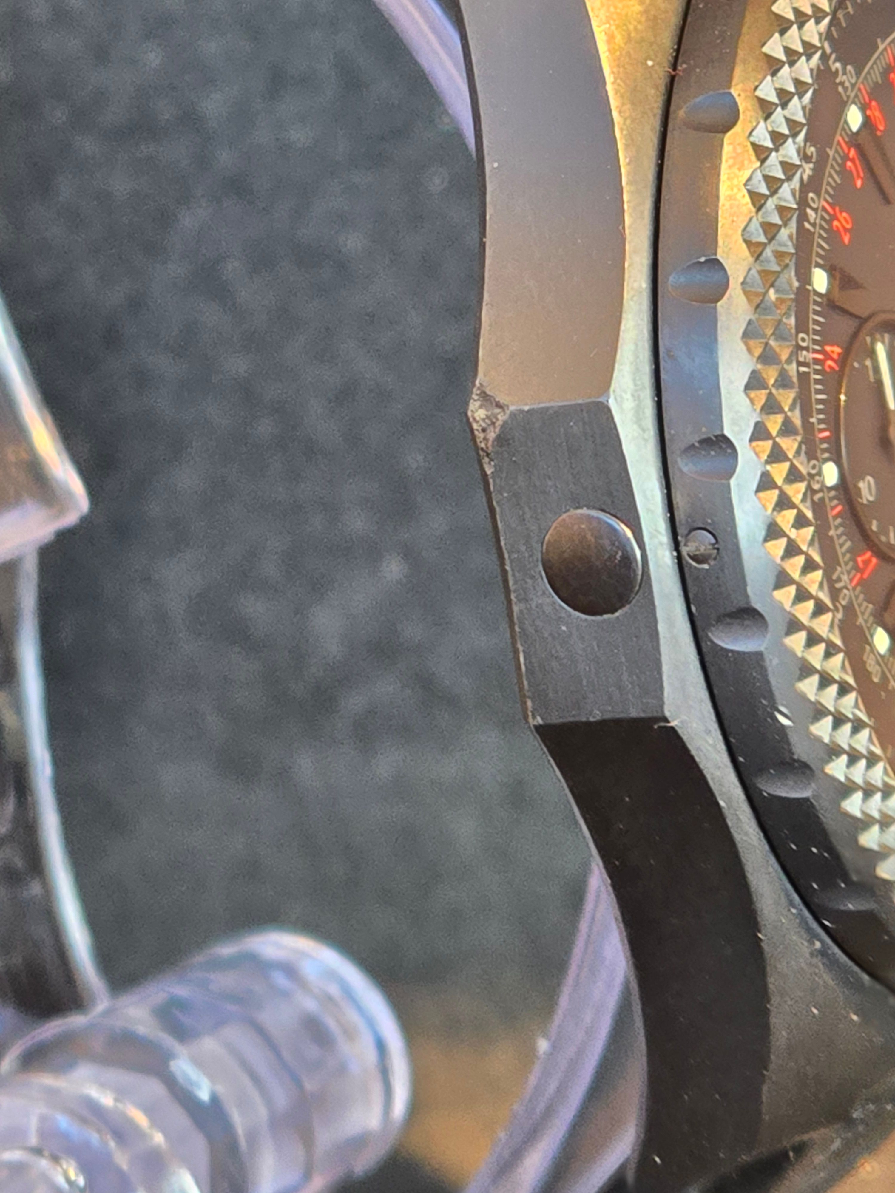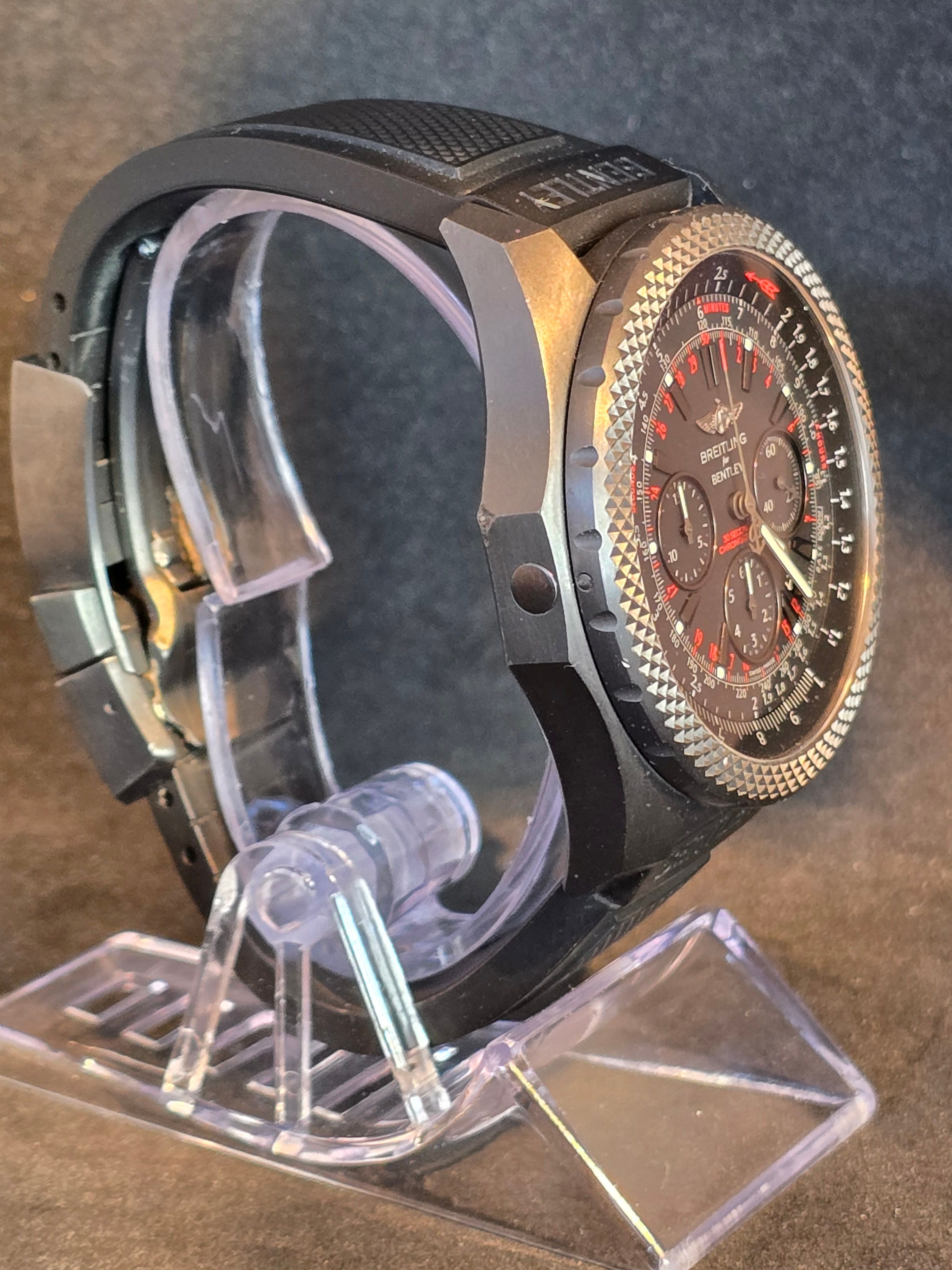 This example is offered without original box or papers and shows signs of wear, including minor surface marks on the case and bezel, consistent with regular use. Despite this, it remains fully functional and retains strong visual impact — a great opportunity to own a rare and desirable model from the Breitling x Bentley collaboration.