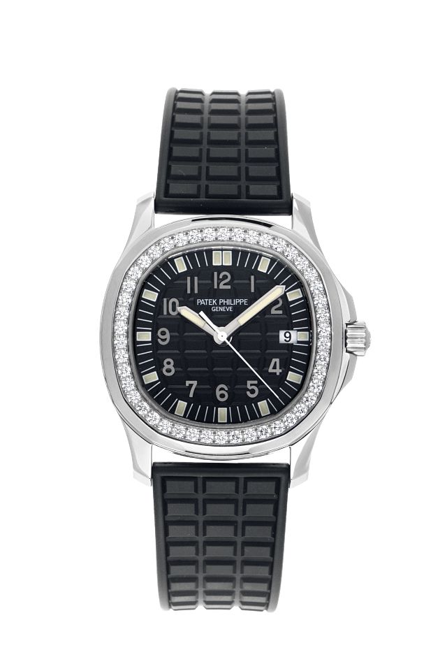 Patek Philippe Aquanaut Stahl Diamanten Quarz Armband Kautschuk Faltschließe Gehäuse Edelstahl poliert und satiniert, Gehäusedurchmesser ohne Krone 34mm, Gehäusehöhe 8mm. Lünette Edelstahl poliert mit 46 Brillanten besetzt, zusammen ca. 1,00ct. Patek Philippe Tropical Armband Kautschuk schwarz, verdeckte Doppelfaltschließe Edelstahl mit Hersteller-Logo. Zifferblatt schwarz mit Aquanaut-Motiv, aufgestzten arabischen Ziffern und hellen Indexen sowie polierten Zeigern. Uhrwerk quarzgesteuert, Patek Philippe Manufakturkaliber E23 SC AIG. 2 mit 7 Edelsteinen, Werknummer: 3658XXX. Anzeige von Stunde, Minute und Sekunde über Zeiger aus der Mitte, Datumsanzeige mit Schnellverstellung bei 3 Uhr. Saphirglas kratzfest. Krone verschraubbar mit Flankenschutz und Hersteller-Logo. Boden Edelstahl verschraubt. Gewicht der Uhr inklusive Armband 57g, Länge des Armbandes inklusive Gehäuse 170mm. Referenznummer: 5067A-001, Gehäusenummer: 4860XXX, ID: KB870000622H-65000, Artikelnummer: 10000064993. Mit Gangkontrolle, neuer Batterie und kompletter äußerlicher Aufarbeitung von Juni 2022, inkl. 1000 Tagen Garantie. Original Patek Philippe Box mit Umkarton und Garantie Papiere von 11/2009 sowie Beschreibung und Ledermappe, Full Set. Kapitalanlage mit Wertsteigerungspotential, seltenes Sammlerstück, fast nicht getragen, aus erster Hand. Wie Neu. Lieferzeit sofort.