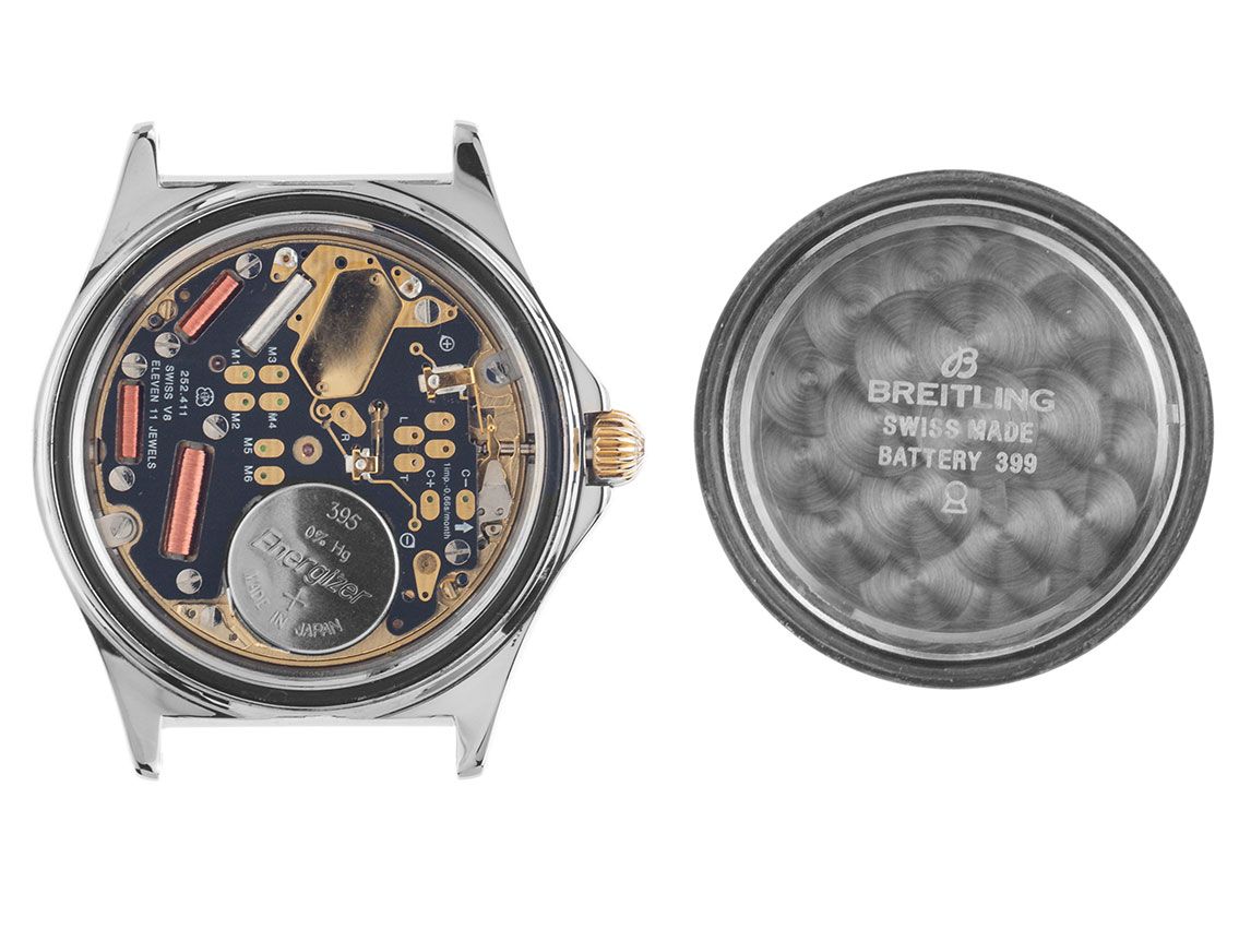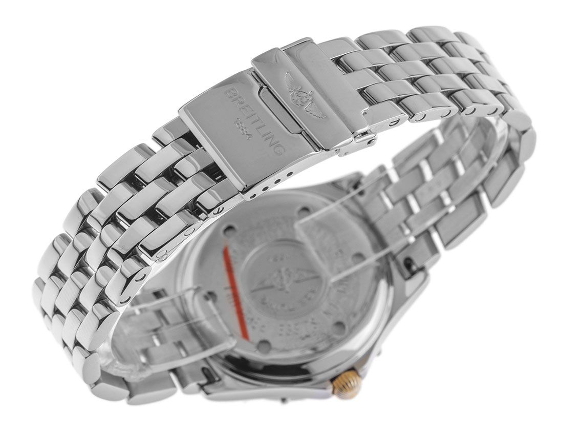 Gehäuse Edelstahl poliert, Gehäusedurchmesser ohne Krone 31mm, Gehäusehöhe 9,6mm. Lünette Edelstahl satiniert mit 60-Minuten Skala und gelbgoldenen Reitern, einseitig drehbar. Armband Edelstahl poliert, Sicherheitsfaltschließe Edelstahl mit Hersteller-Logo. Zifferblatt blau mit gelbgoldenen Indexen und gelbgoldenen Zeigern. Uhrwerk quarzgesteuert, Kaliber B7 mit 11 Edelsteinen. Anzeige von Stunde, Minute und Sekunde über Zeiger aus der Mitte, mit Sekundenstopp zur sekundengenauen Einstellung der Uhrzeit, Datumsanzeige mit Schnellverstellung bei 3 Uhr. Saphirglas kratzfest. Krone mit Flankenschutz. Boden Edelstahl verschraubt und graviert. Gewicht der Uhr inklusive Armband 76g, Länge des Armbandes inklusive Gehäuse 170mm. Referenznummer: B62022, Gehäusenummer: 0XXX, Baujahr: 1994, ID: P101026000625H-4200, Artikelnummer: 10000080617. Mit Gangkontrolle, neuer Batterie und kompletter äußerlicher Aufarbeitung von Juni 2025. Original Breitling Box und Watchregister Auszug von Juni 2025, The Watch Register Zertifikat / ohne Eintrag (Internationale Datenbank für verlorene oder gestohlene Uhren). Superschnäppchen, extrem seltenes Sammlerstück. Sehr guter Zustand. Lieferzeit sofort.