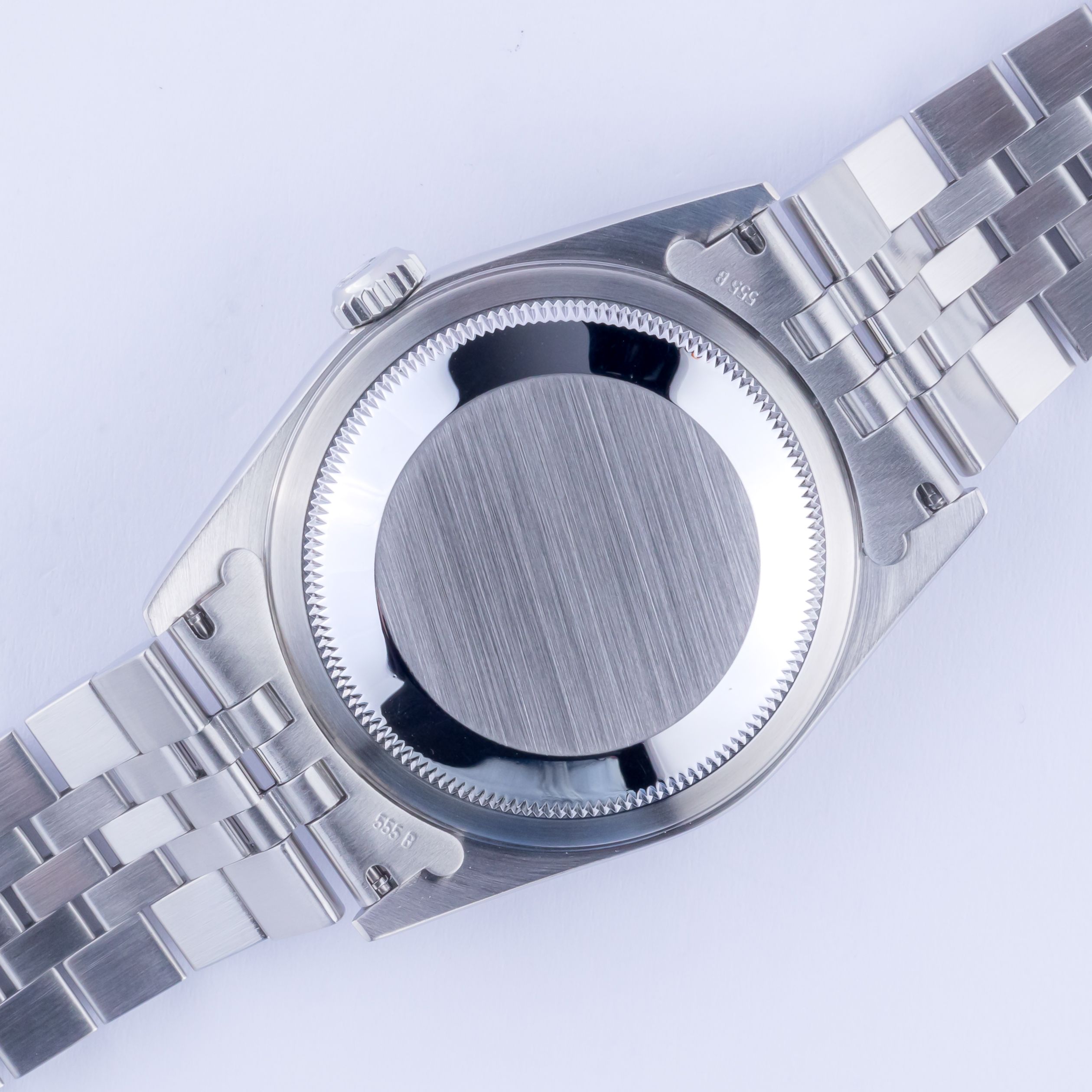 Rolex Oyster Perpetual Datejust reference 16234 from 2002 including full set. The Datejust 16234 Datejust measures a 36mm stainless steel case, a stainless steel Jubilee bracelet and a fluted 18k white gold bezel. This Datejust 16234 features an automatic movement caliber 3135 with quickset date function, a scratch resistance sapphire crystal and a grey dial with Roman markers.