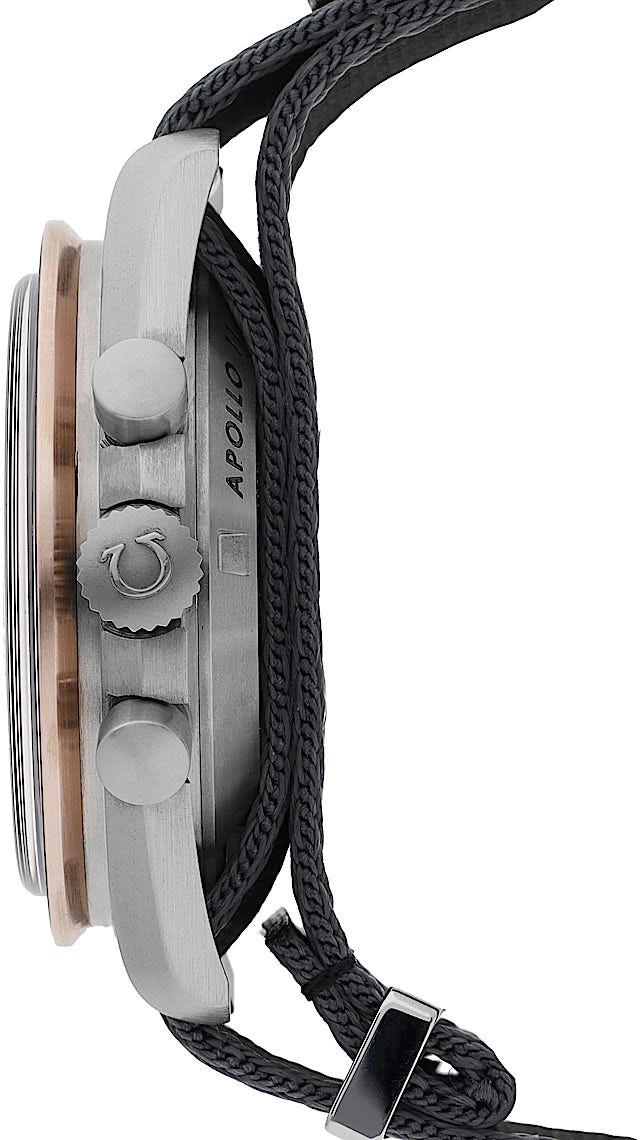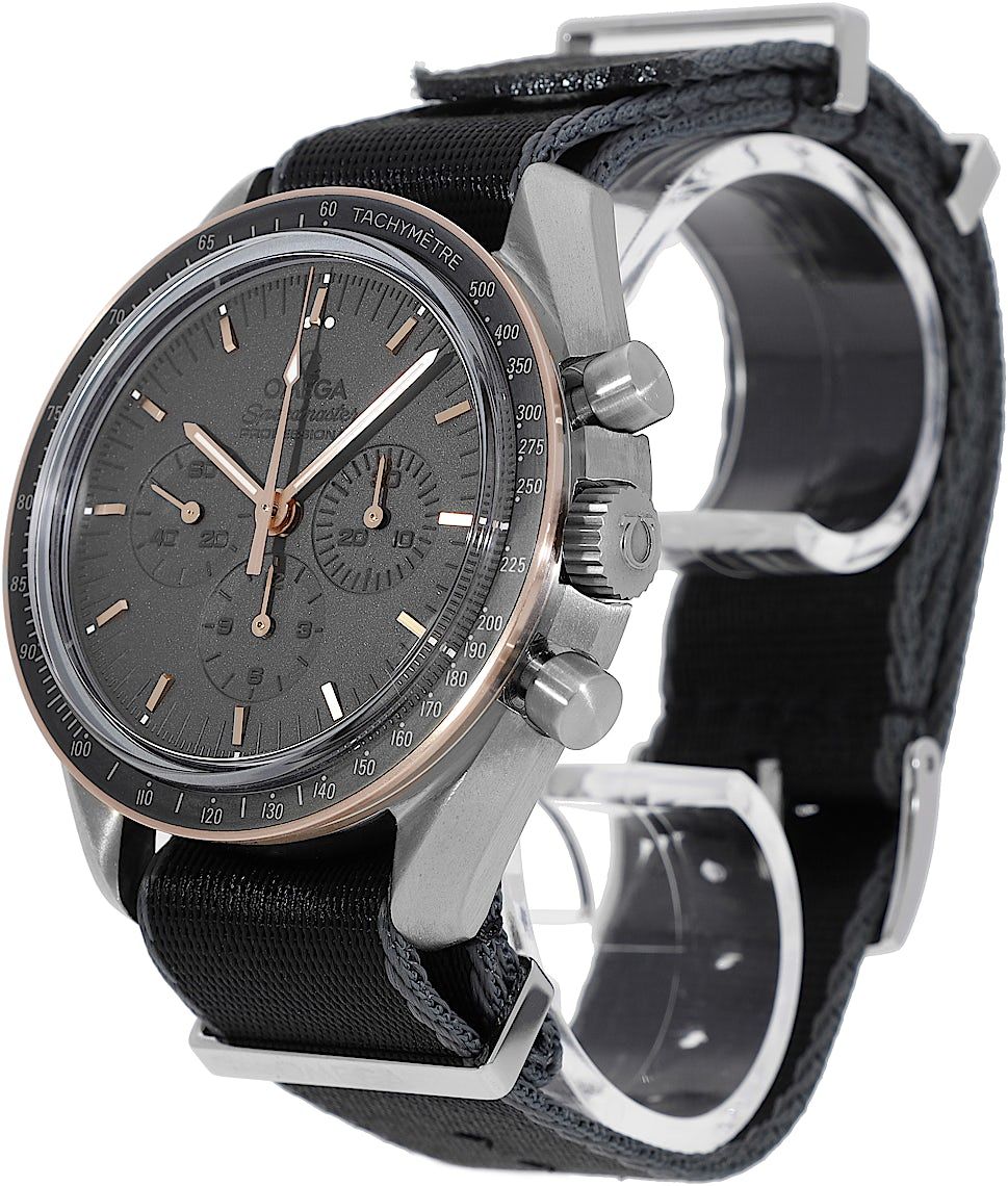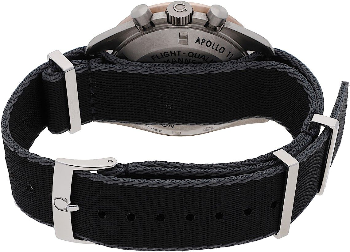 Omega Speedmaster Apollo 11 45th Anniversary Ltd., Reference: 311.62.42.30.06.001, Gender: Male, Size: 42mm, Dial color: Brown, Strap material: Leather / Textile, Movement: Manual Wind, Year: 2015, Condition: Previously worn, minor to no signs of usage. The movement is flawless and the case has been cleaned. watch tested ensure full functionality. An inspection by our certified watchmakers guarantees its authenticity., Documents: Original papers, CHRONEXT Certificate