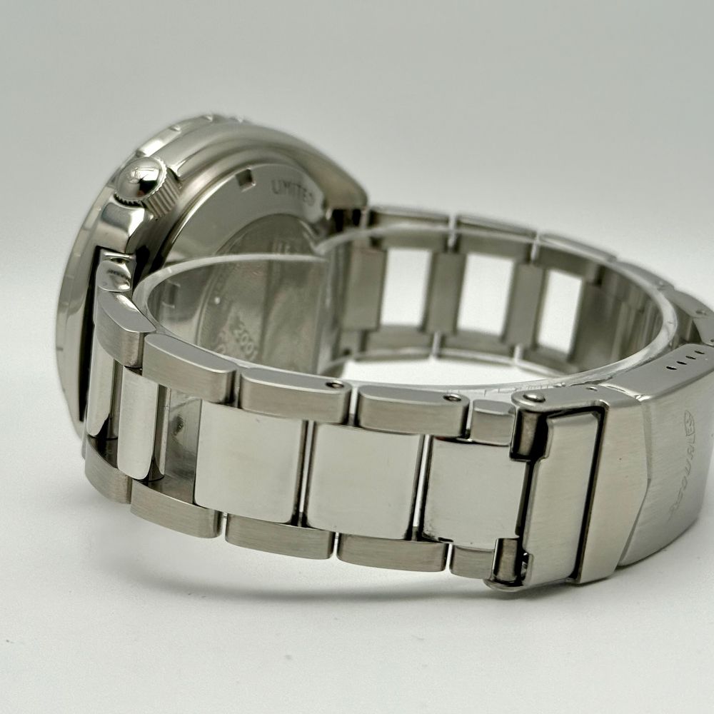 This Squale 2001 is in near mint condition with only some marks on the polished parts. Factory warranty until 1-2027. We are proud to offer a two-year warranty on every Rolex watch offered by us. Other brands come with a one-year warranty unless otherwise mentioned. The warranty includes the functioning of the watch including the functioning of any present complications. Excluded from the warranty are: water damage, turn and push buttons, crystal, watch strap and clasp.