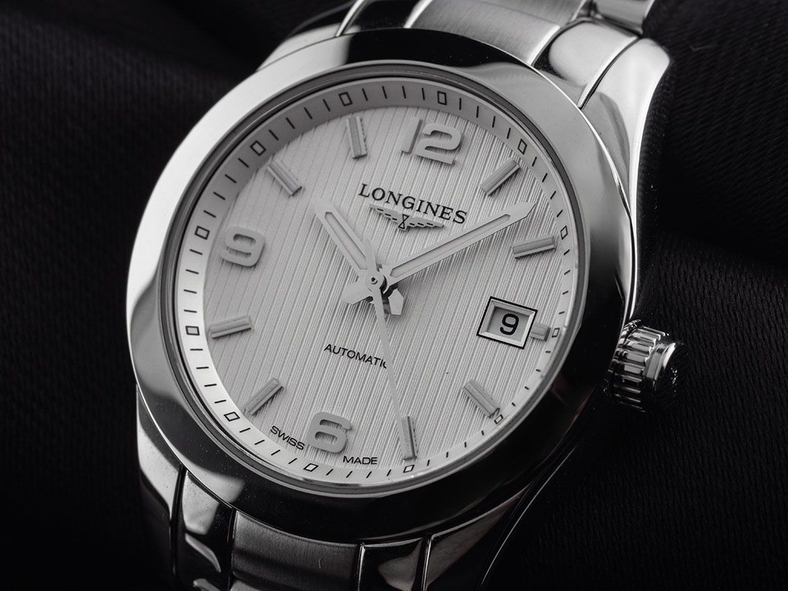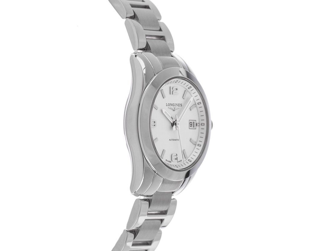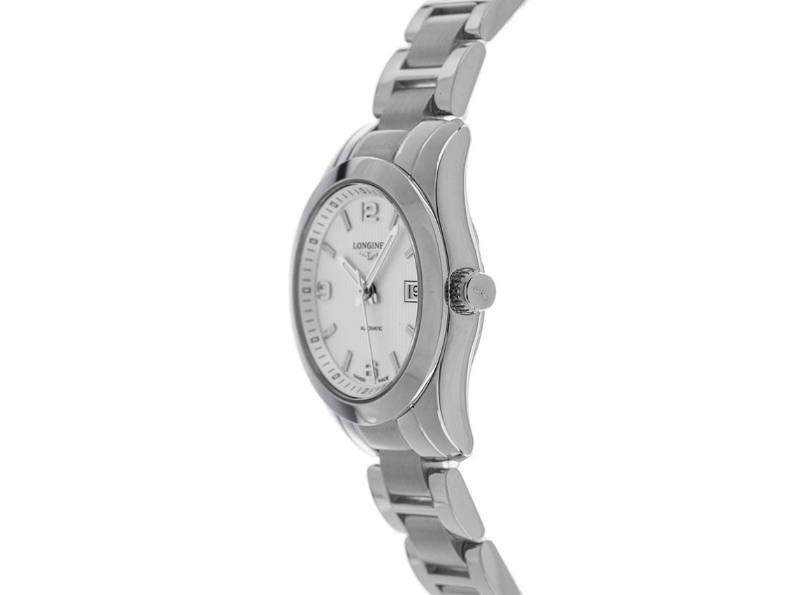 Gehäuse Edelstahl poliert, Gehäusedurchmesser ohne Krone 29,5mm, Gehäusehöhe 9,3mm. Lünette Edelstahl glatt und poliert. Armband Edelstahl poliert und satiniert, verdeckte Doppelsicherheitsfaltschließe Edelstahl mit Hersteller-Logo. Zifferblatt silberfarben mit aufgesetzten Edelstahl Indexen und Edelstahl Zeigern. Uhrwerk Automatik, Kaliber Longines, Gangreserve ca. 38 Stunden. Anzeige von Stunde, Minute und Sekunde über Zeiger aus der Mitte, Datumsanzeige mit Schnellverstellung bei 3 Uhr. Saphirglas kratzfest. Krone geriffelt mit Hersteller-Logo. Boden Edelstahl verschraubt und graviert mit Saphirglas-Sichtfenster. Gewicht der Uhr inklusive Armband 77g, Länge des Armbandes inklusive Gehäuse 180mm. Referenznummer: L2.285.4.76.6, ID: ST512217000625H-1670, Artikelnummer: 10000080867. Original Longines Box mit Umkarton und Garantie Papiere von 2025 sowie Beschreibung, Full Set. Ungetragen. Lieferzeit sofort.